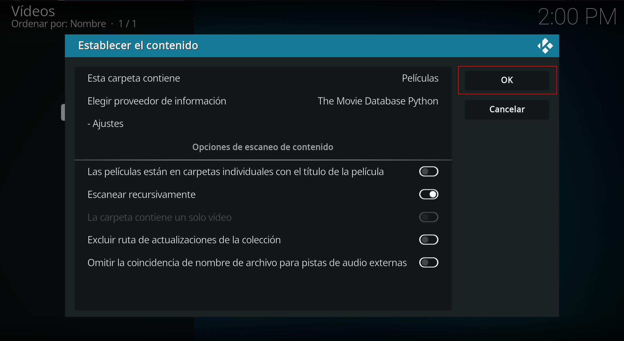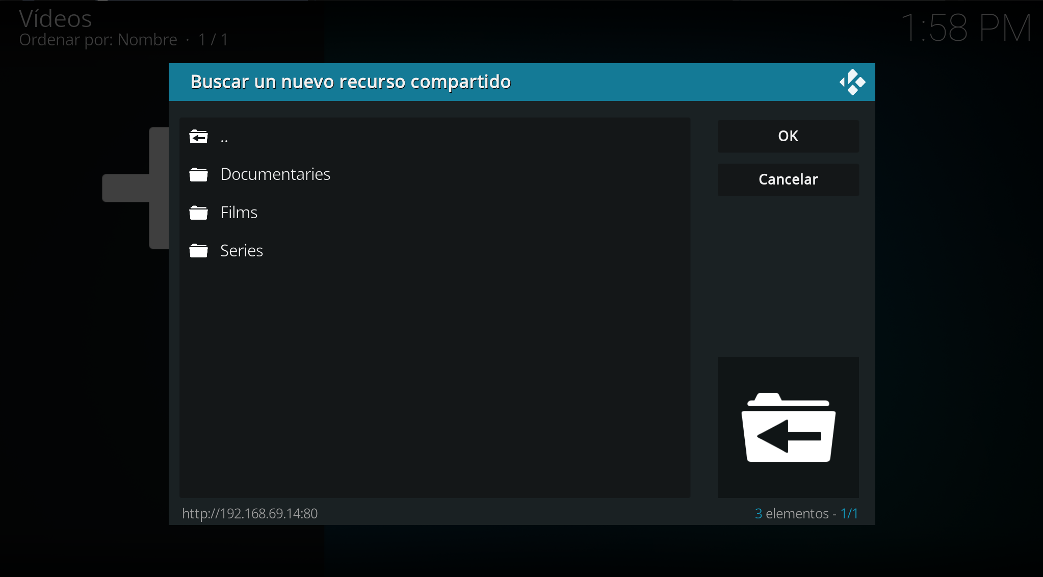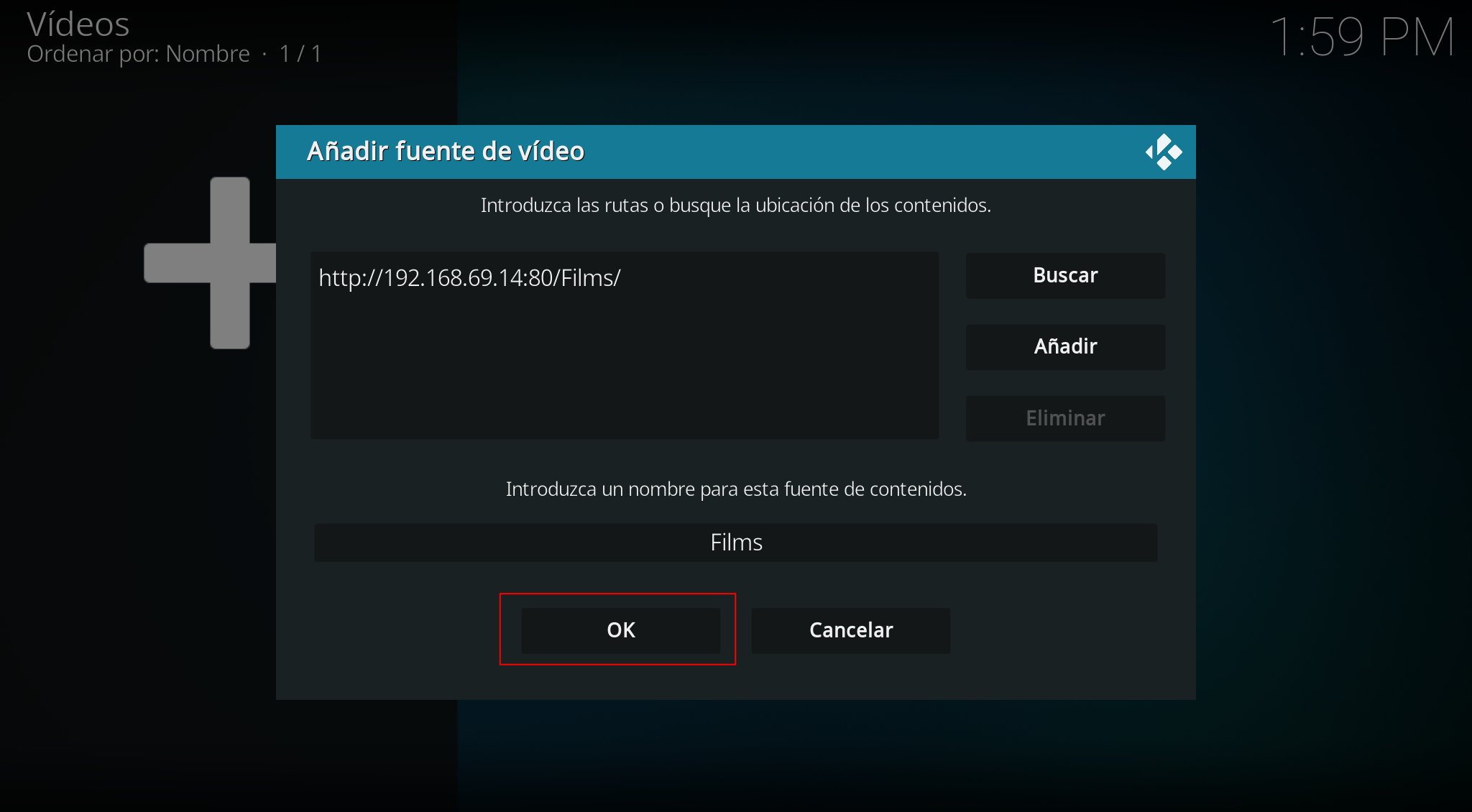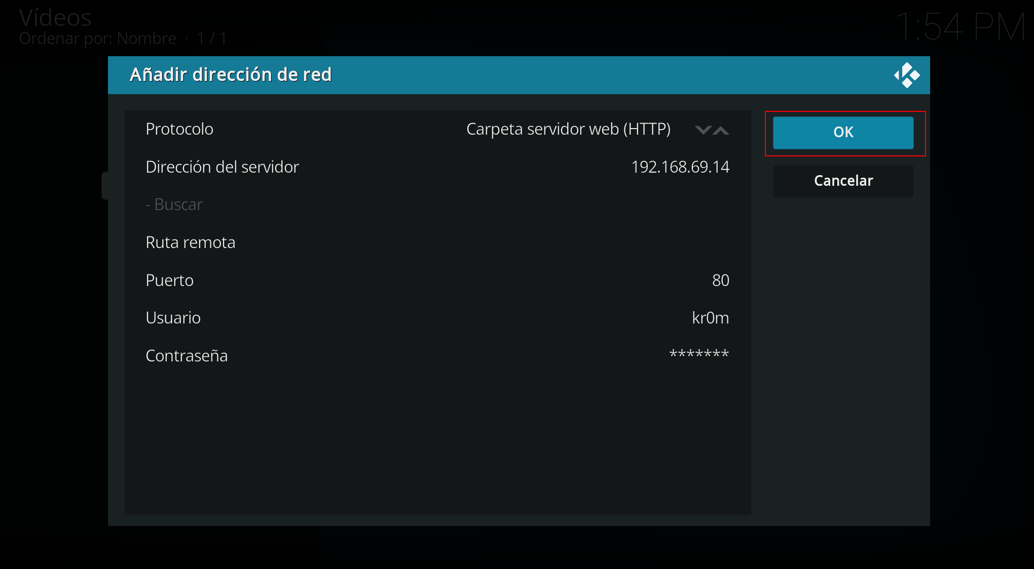 Now it’s time to add the source in KODI, we access the configuration parameters: