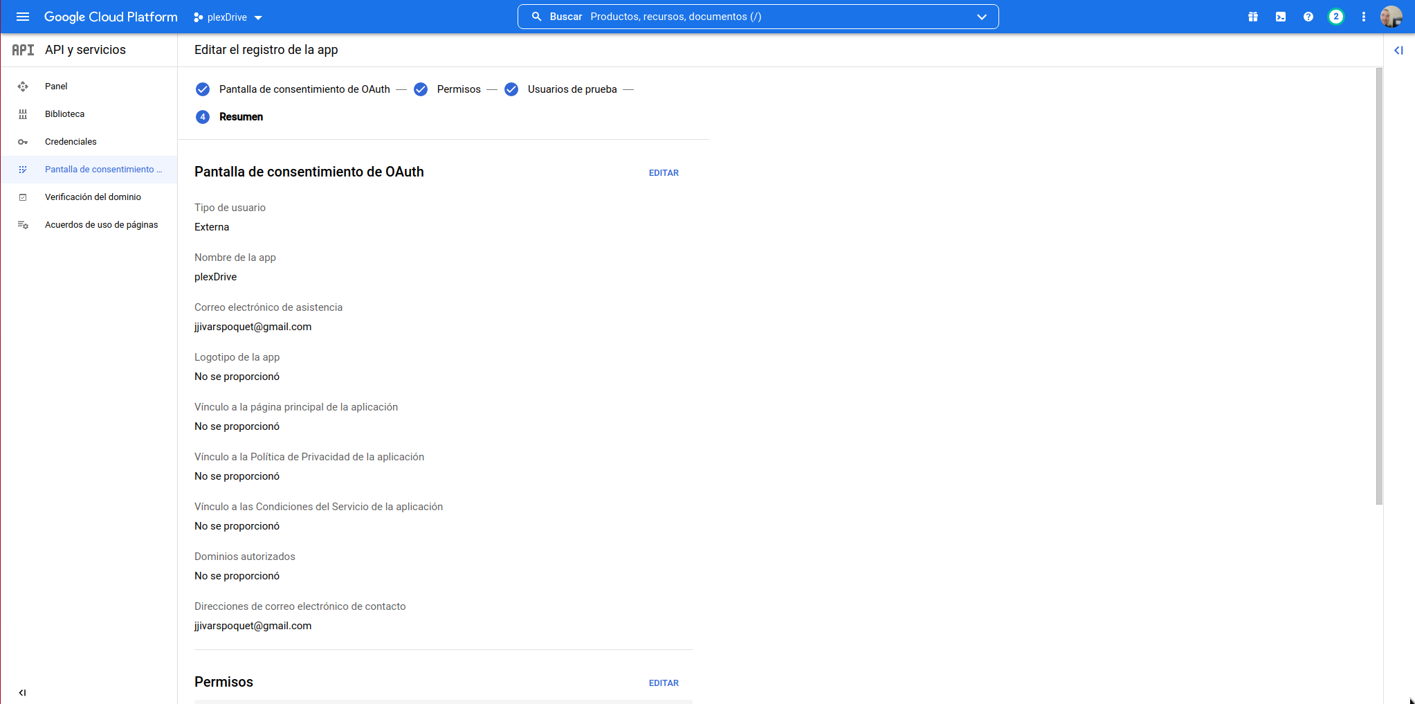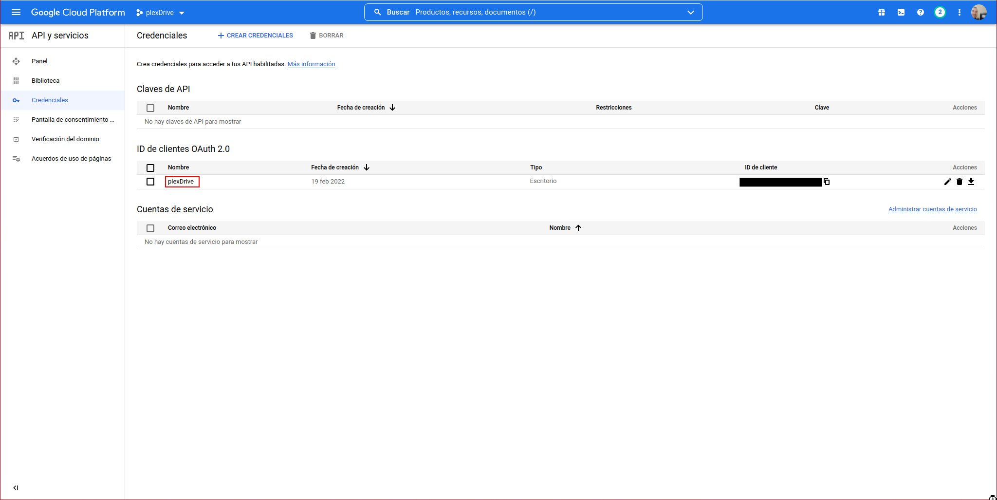 We access the URL indicated by PlexDrive using the previously authorized user:
