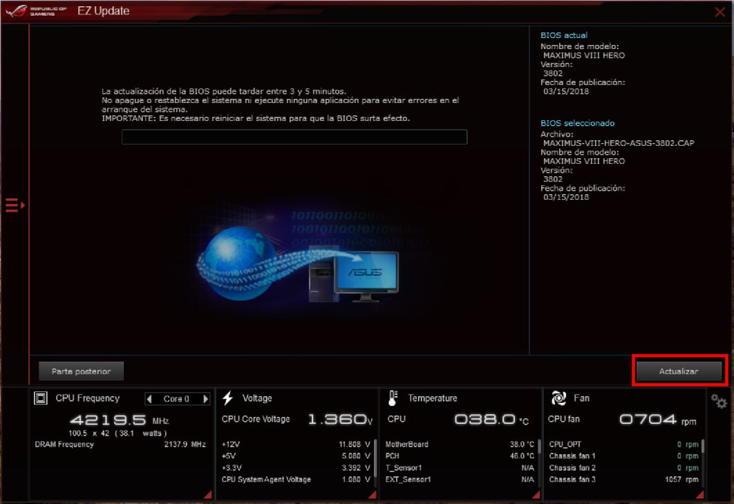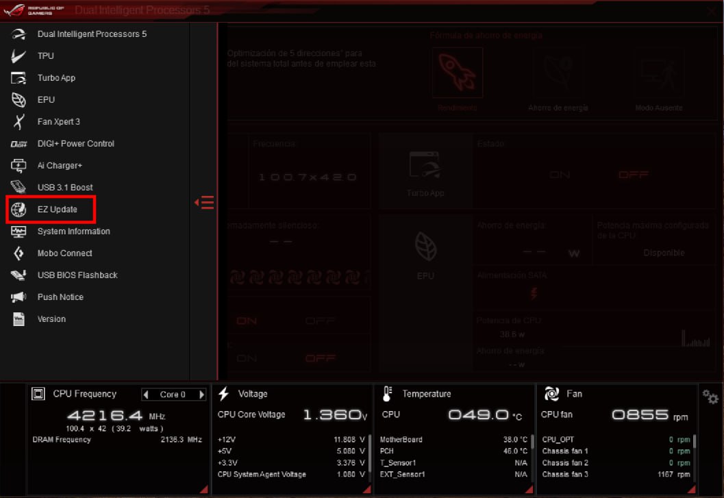 | Access EZ Updater | Select the BIOS image | Select the BIOS image |