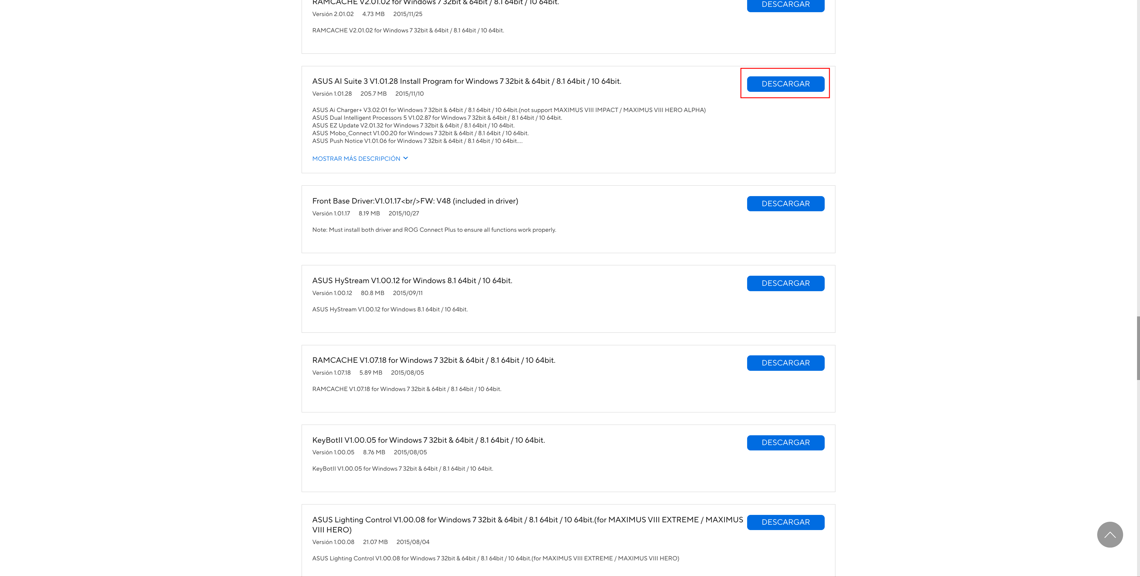 Drivers and Utilities -> Drivers and Utilities -> Utilities: ASUS AI Suite 3 V1.01.28 Install Program for Windows 7 32bit & 64bit / 8.1 64bit / 10 64bit. Version 1.01.28 205.7 MB 2015/11/10