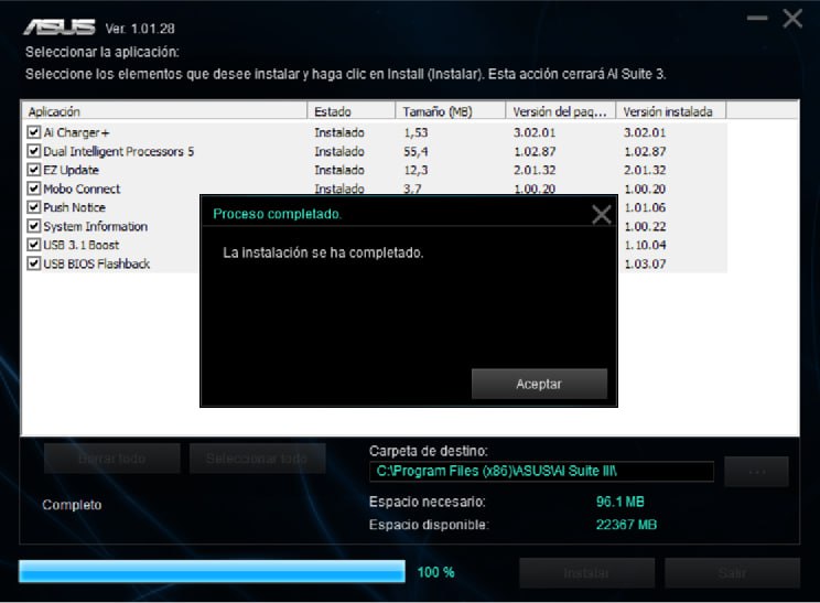 We extract both the BIOS and the ASUS AI Suite installer, then run the latter (if we try to install directly from the compressed file, it will throw an error) by executing Setup.exe.