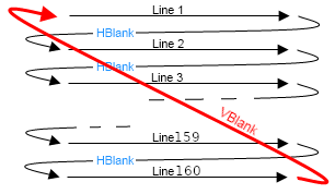 - VBLANK is the time it takes for the PPU to go from the last pixel of the LCD screen to the first to start displaying the next image. Every time it goes from the last pixel to the first, an interrupt is generated in the GameBoy. By controlling this interrupt, we can know if we are drawing the first line of the screen.