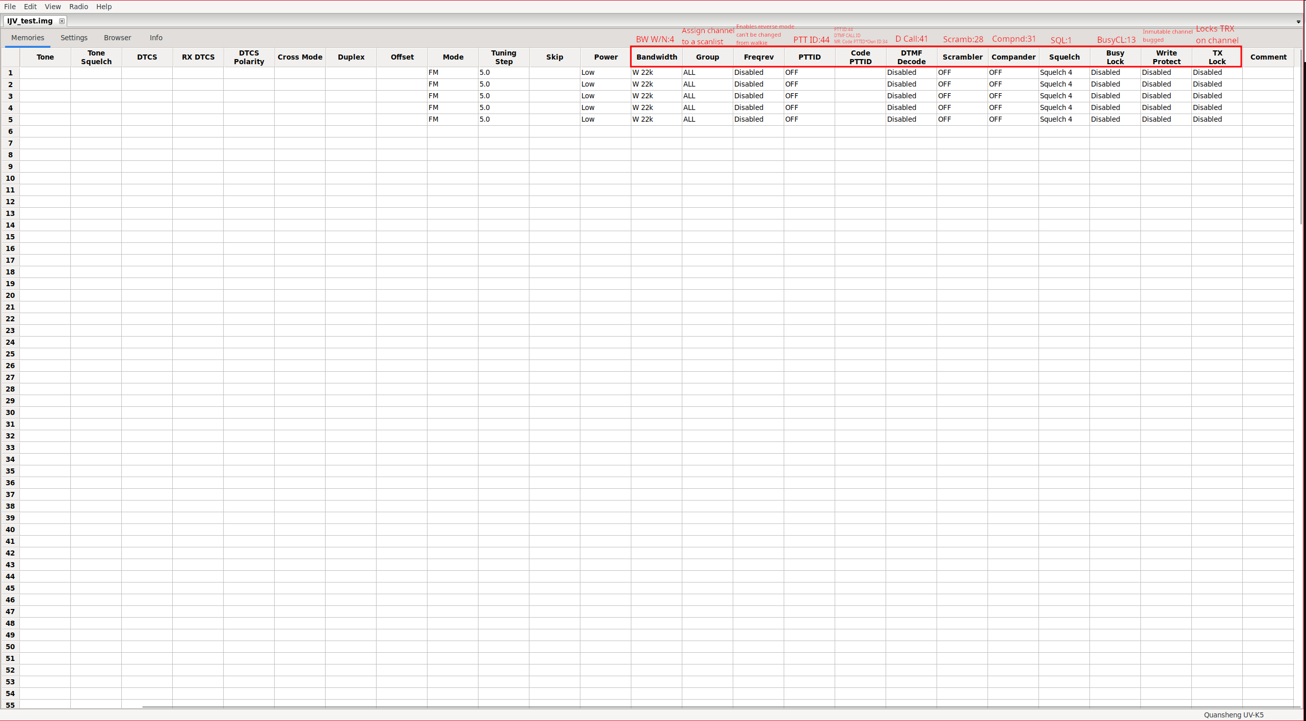 It seems that CHIRP is quite buggy at the moment, at least with this walkie model. For example, we can see on channel 1 that it doesn’t have any