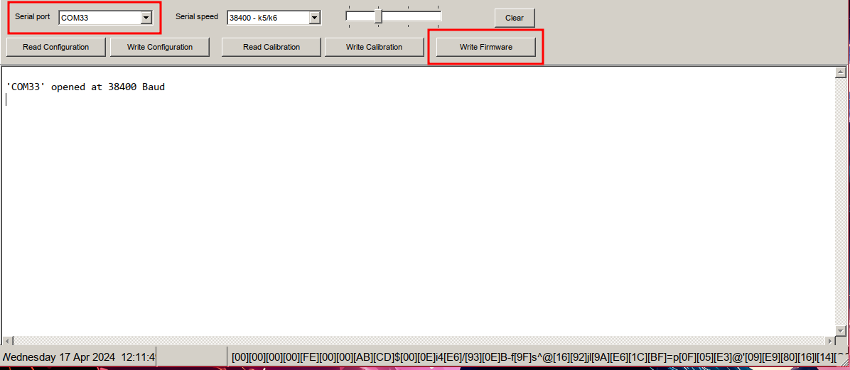 | We specify the serial port and the firmware image. | We select the correct image. |