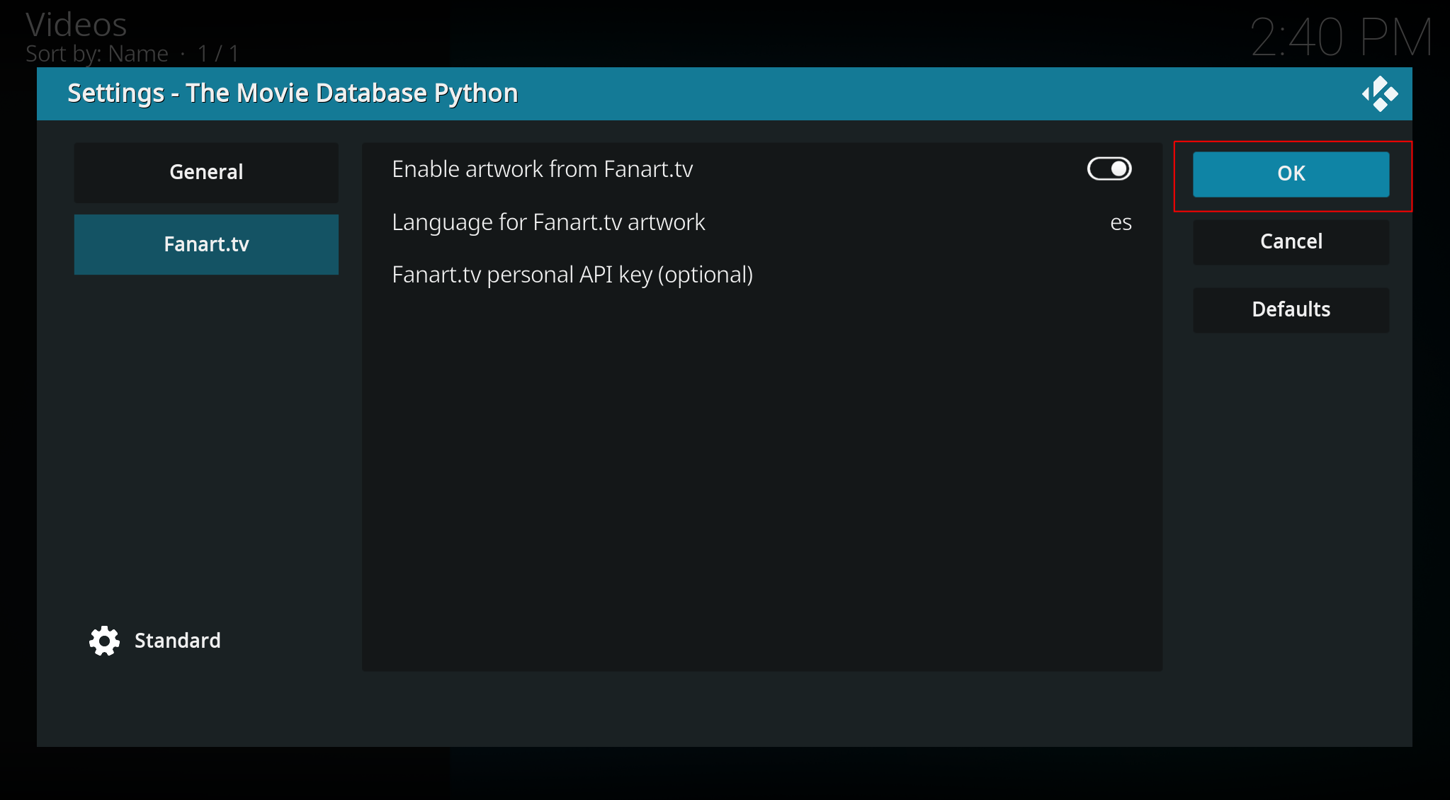 We enable the library to be updated every time the Google Drive unit is indexed. We can also schedule automatic indexing every X hours or when KODI starts up. This way, we will always have the library updated with the content of the Google Drive unit. However, I will not enable it yet because I am still testing KODI and I don’t want it to index the unit every time I start it up.