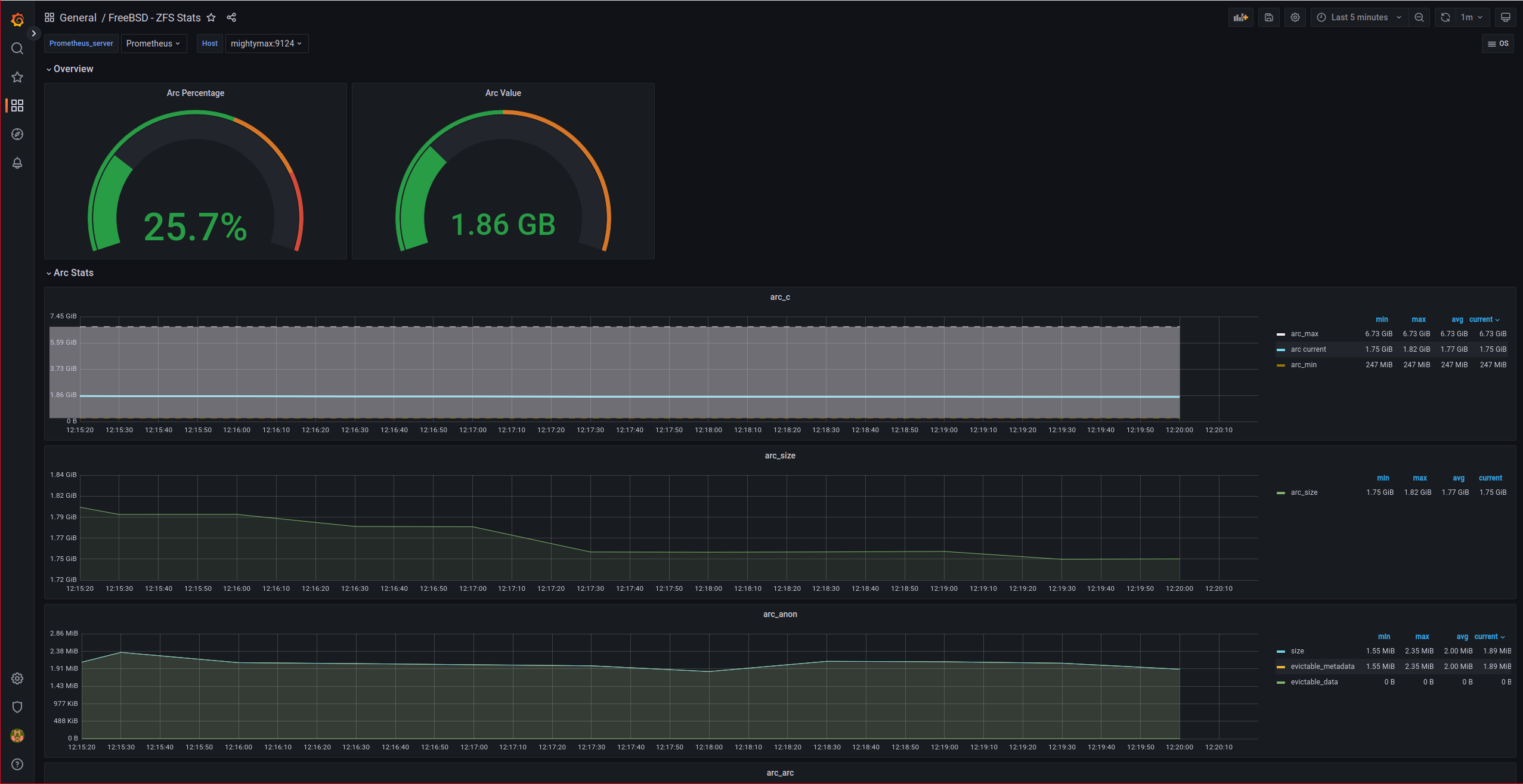 One of the Grafana dashboards that plots the exporter’s data is the ZFS statistics: