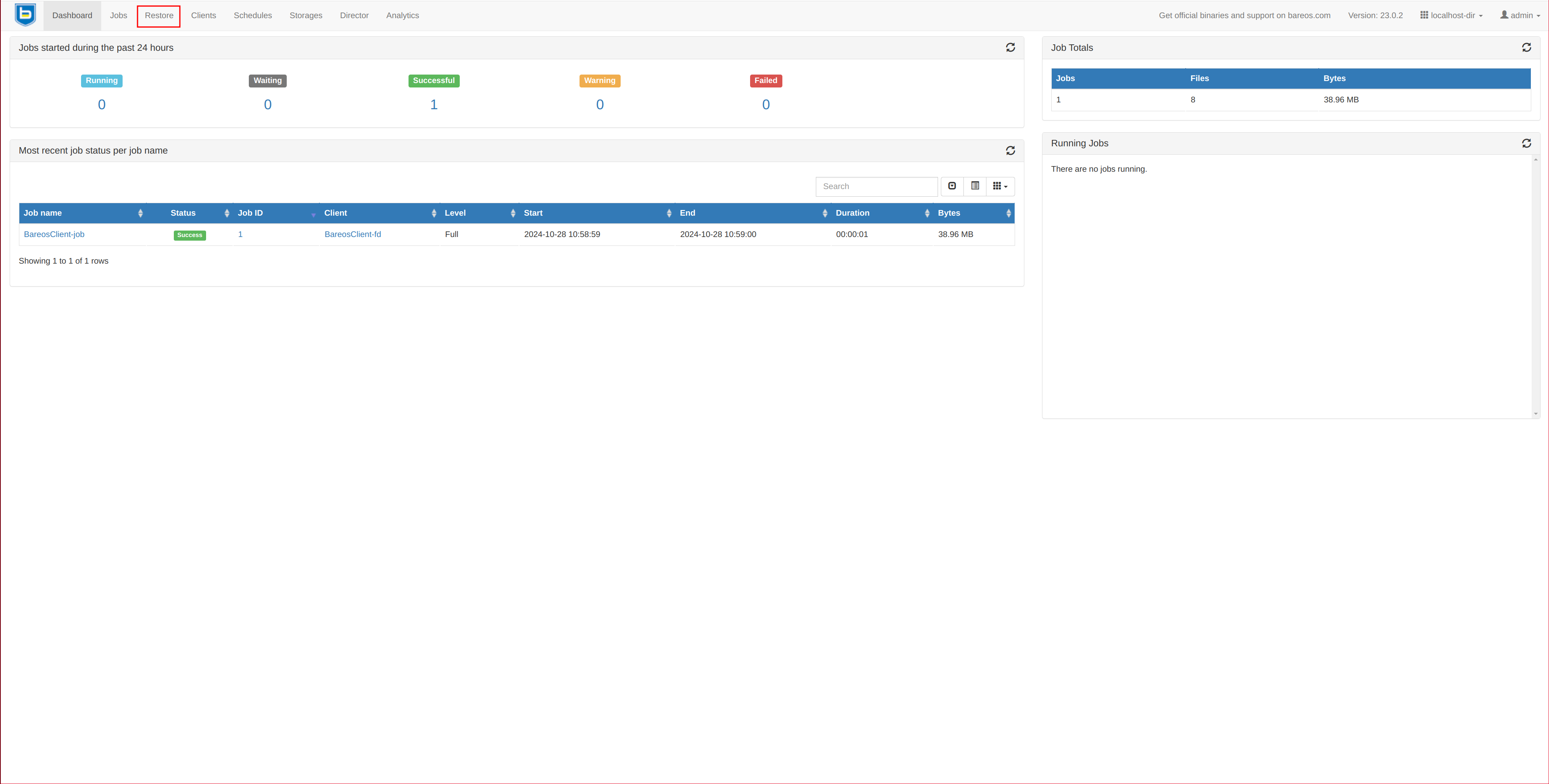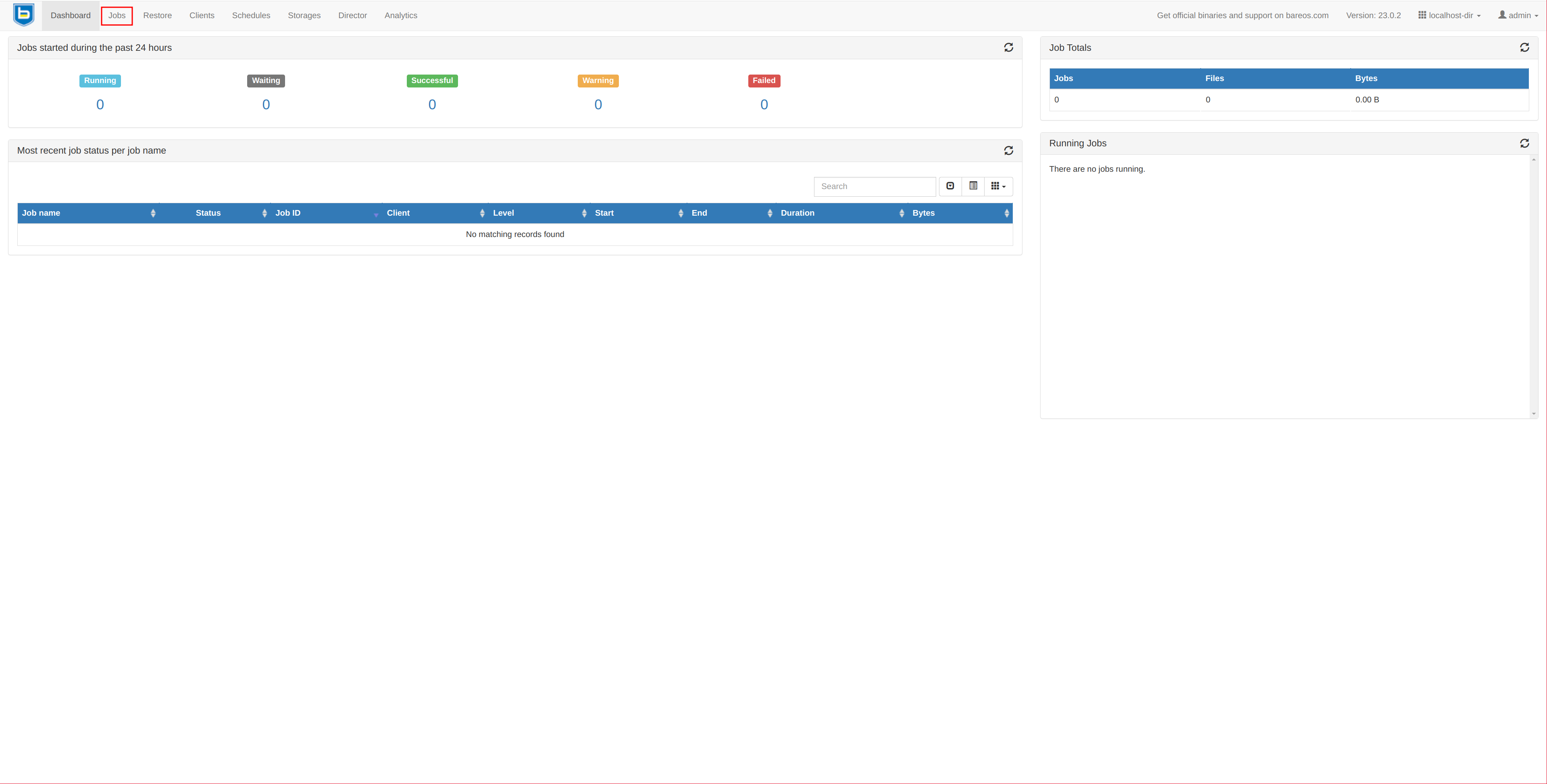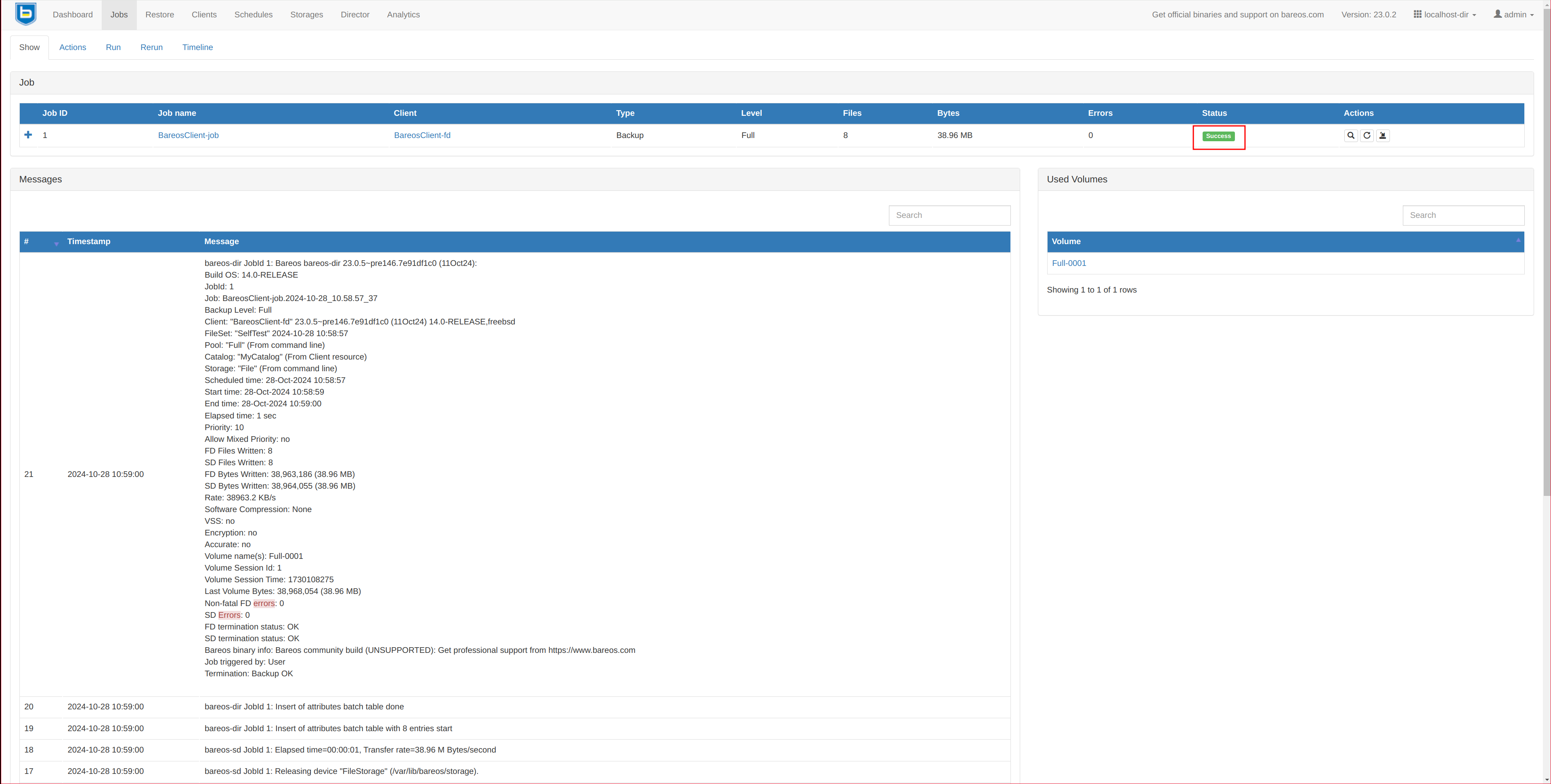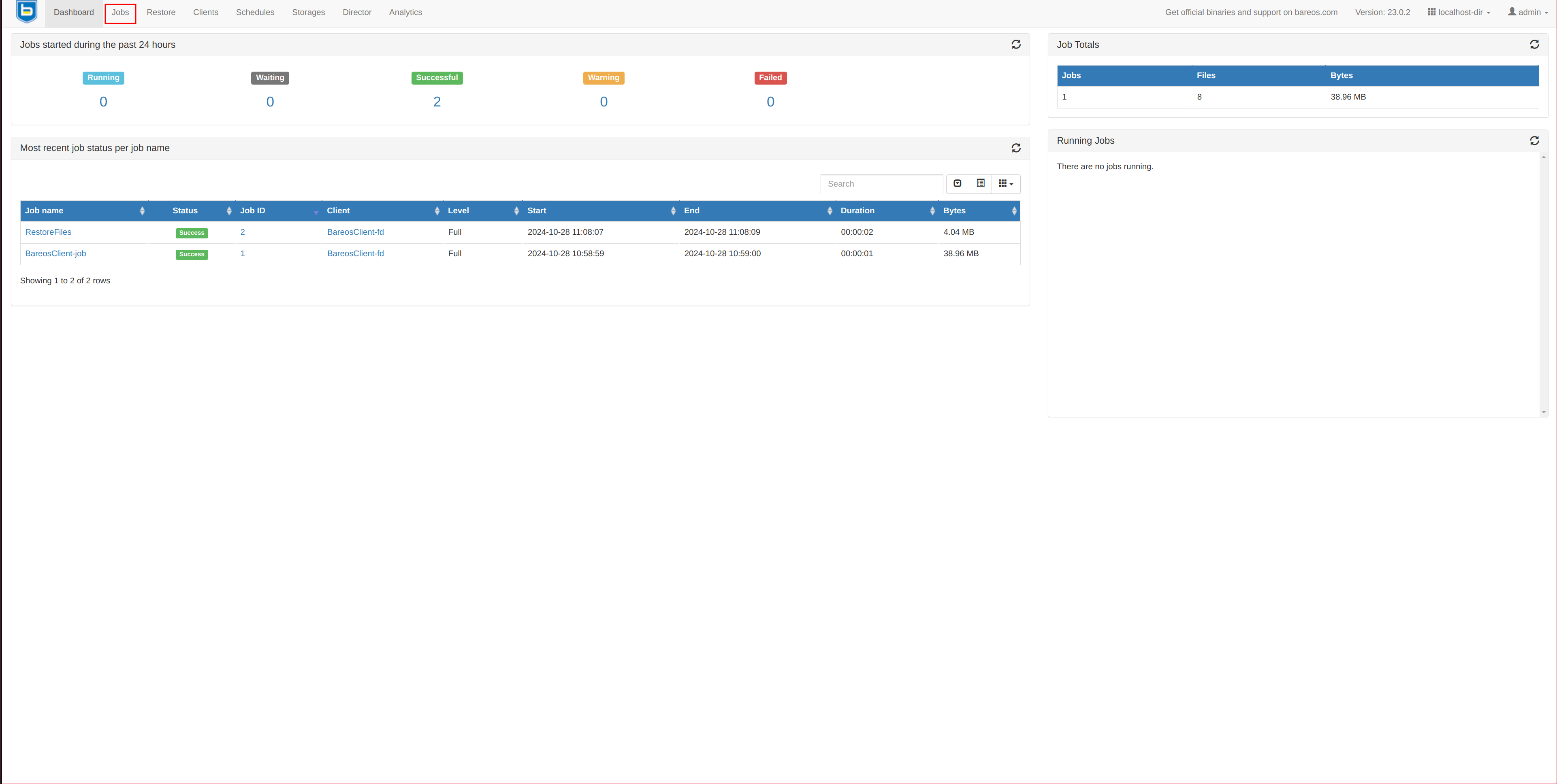 Para ello accedemos a la interfaz web de Bareos: Jobs
