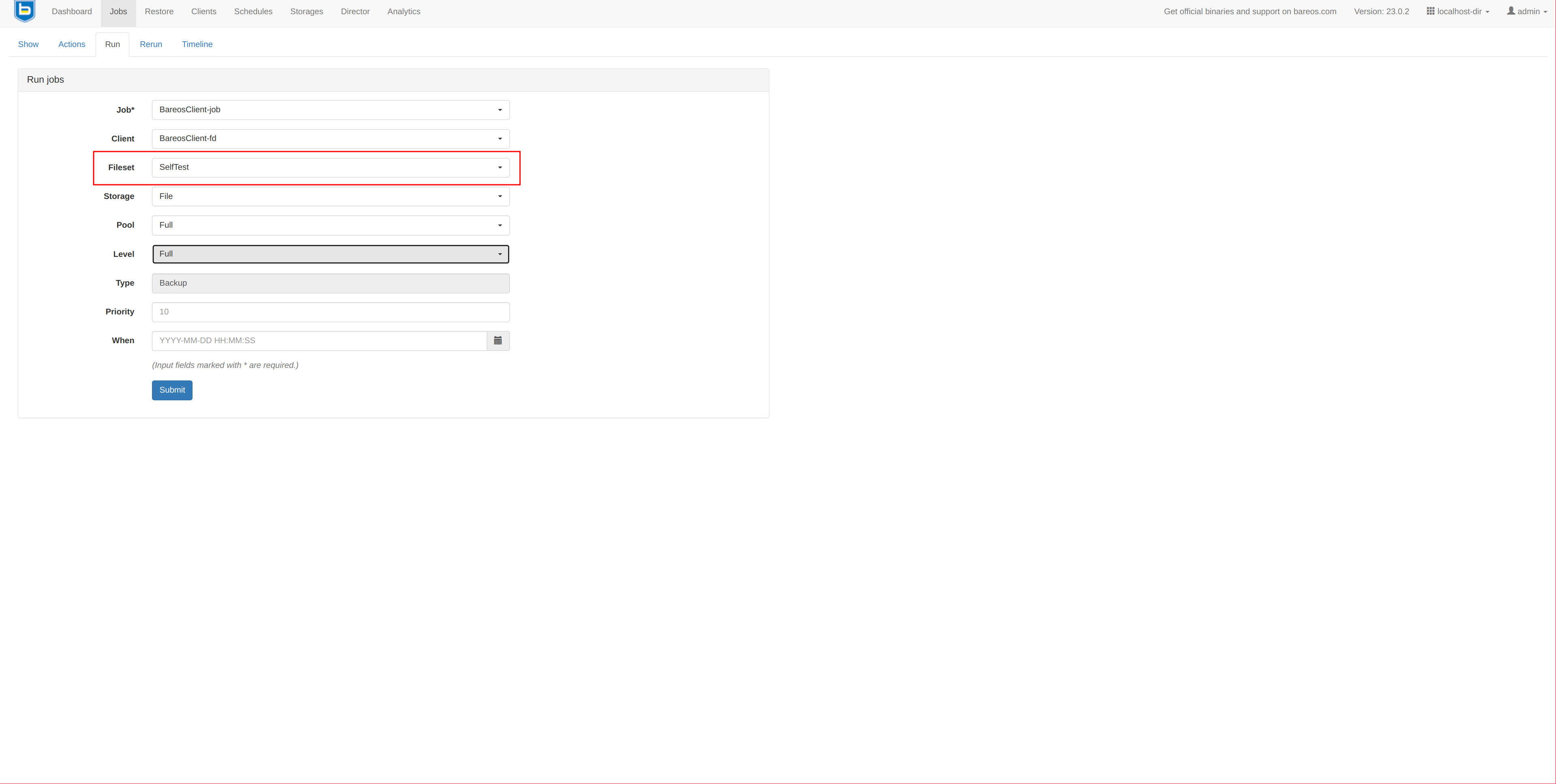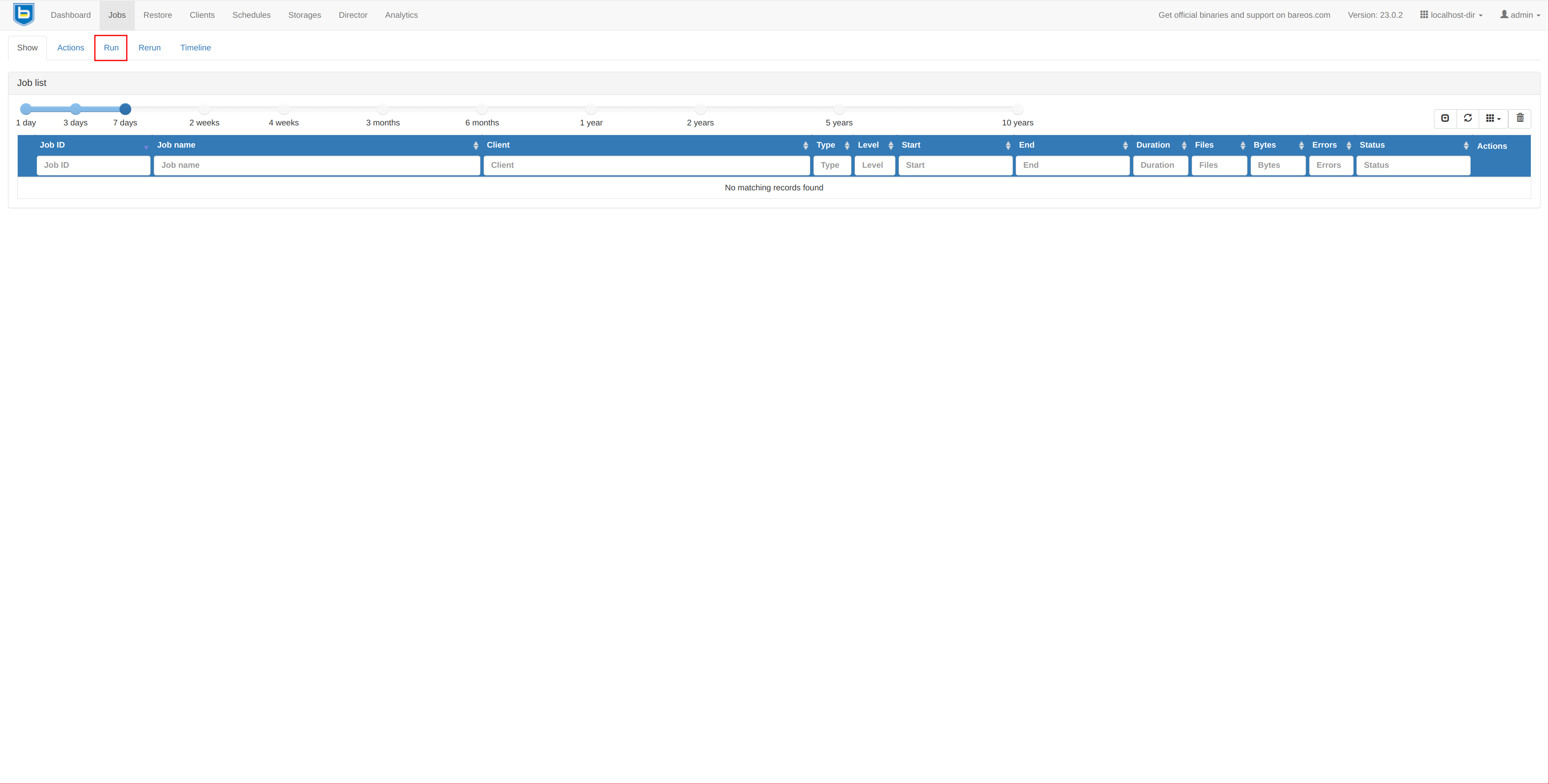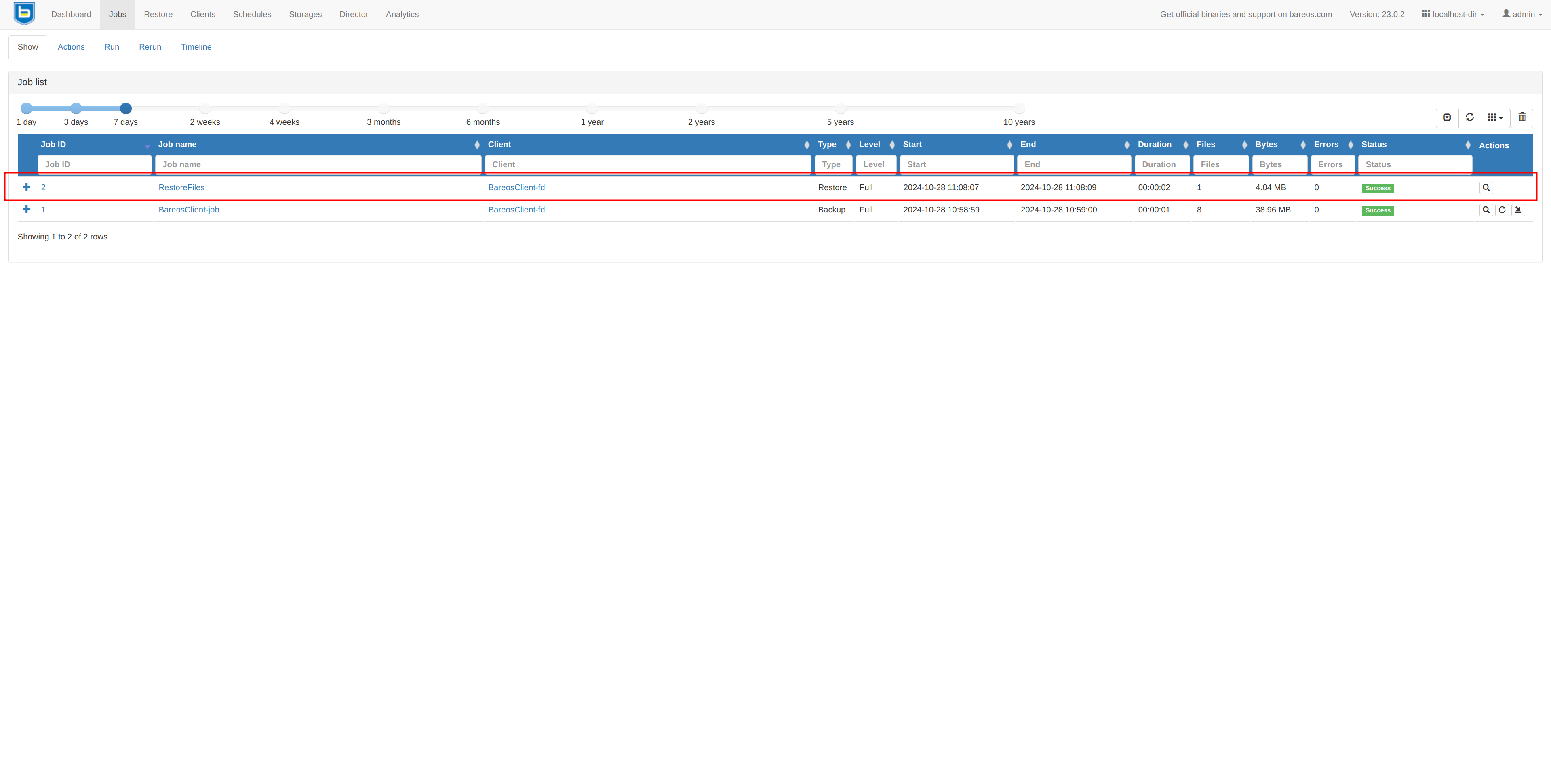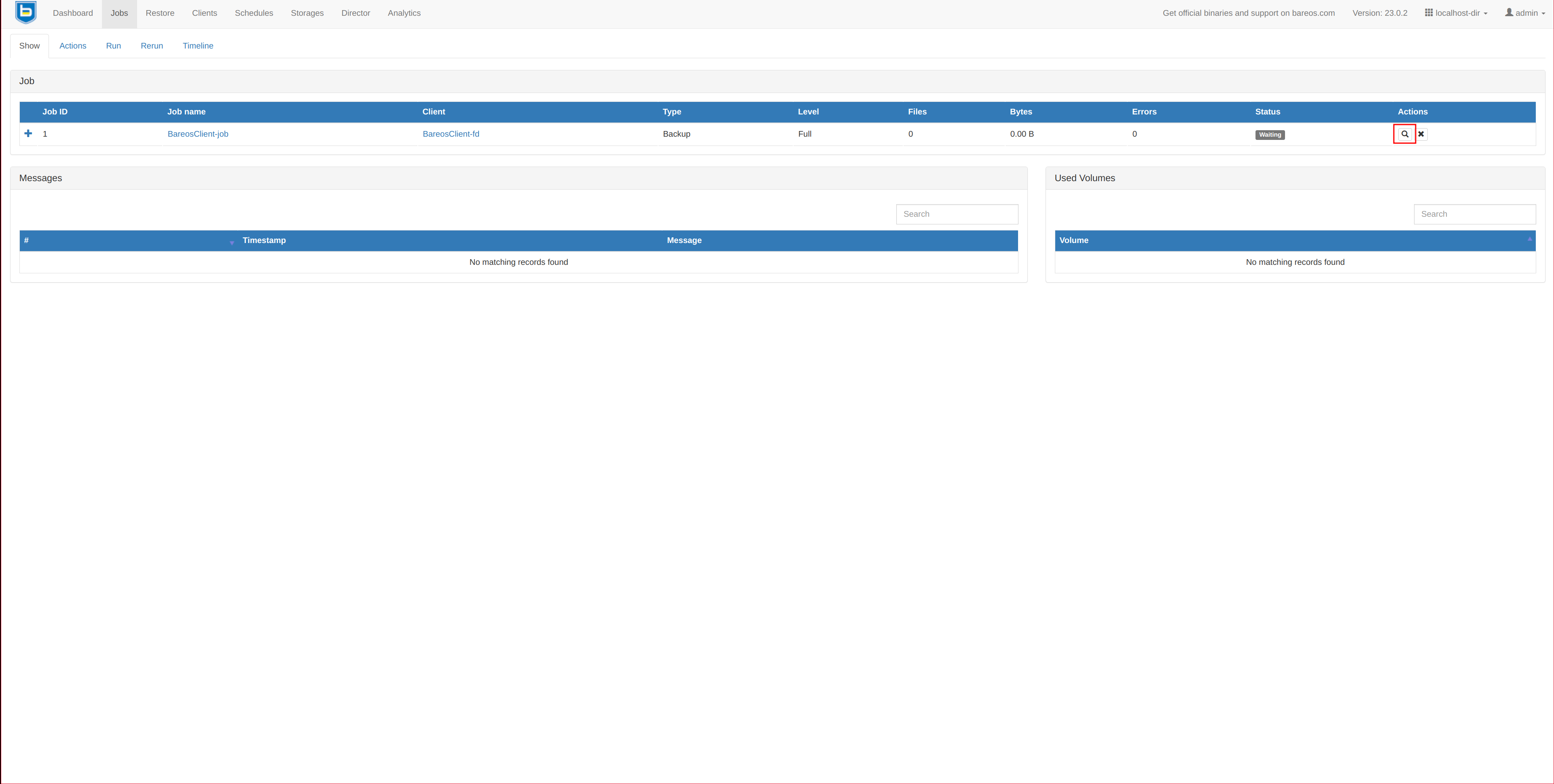 Para ello accedemos a la interfaz web de Bareos: Jobs