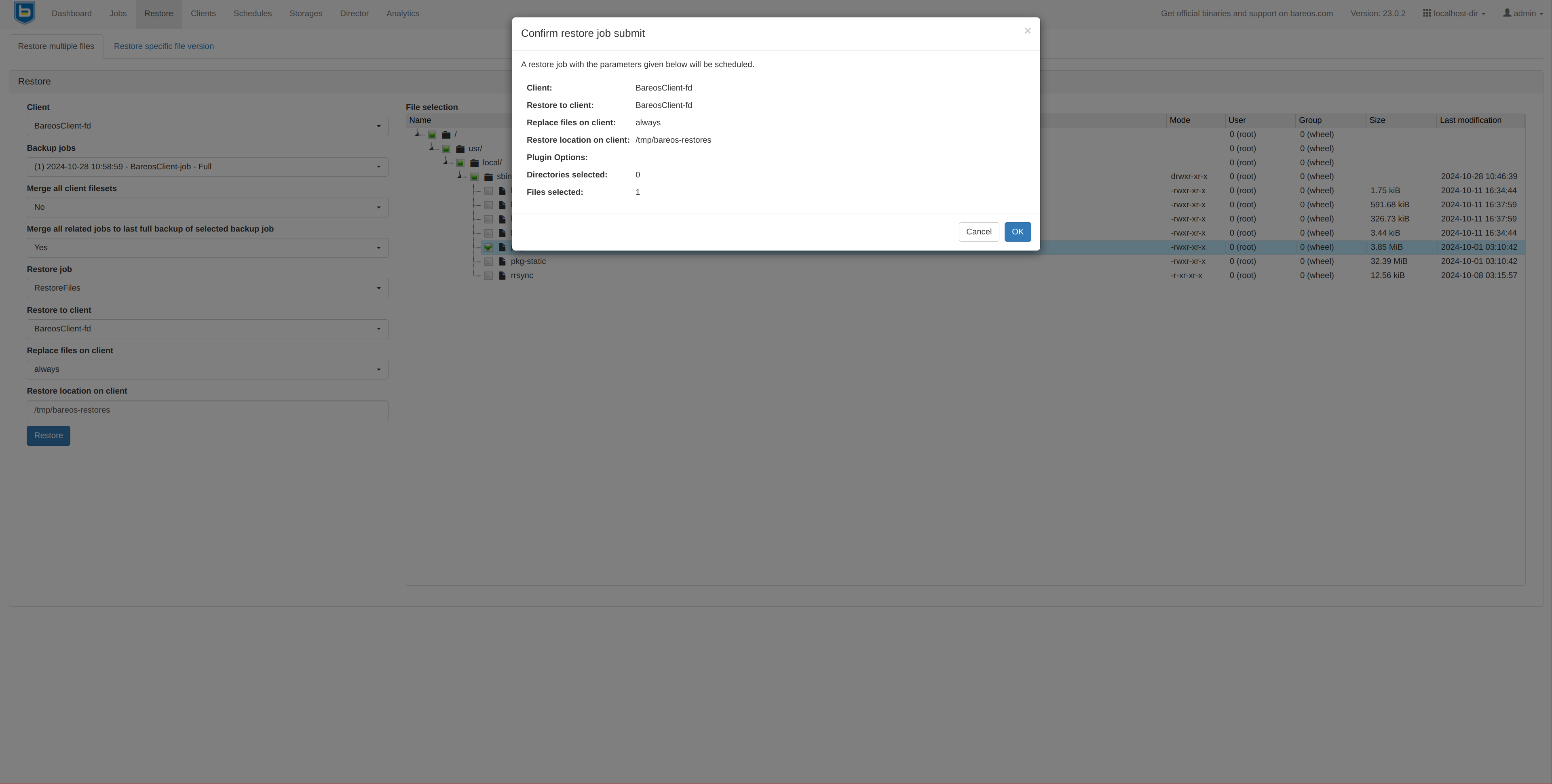 -rwxr-xr-x 1 root wheel 4040720 Oct 1 03:10 /tmp/bareos-restores/usr/local/sbin/pkg