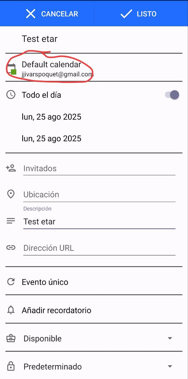 El primer paso es asegurarse de estar creando el evento en el calendario correcto desde Etar.