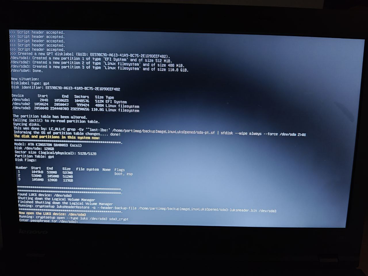 - Restore: Linux-EFI+cifrado(abriendo)