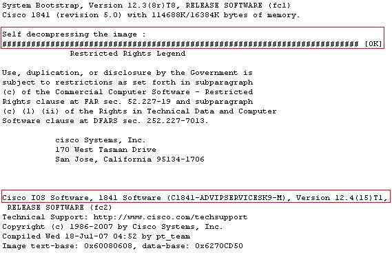 Podemos ver la versión de IOS que tenemos, en este caso la C1841-ADVIPSERVICESK9-M en la Versión 12.4(15)T1