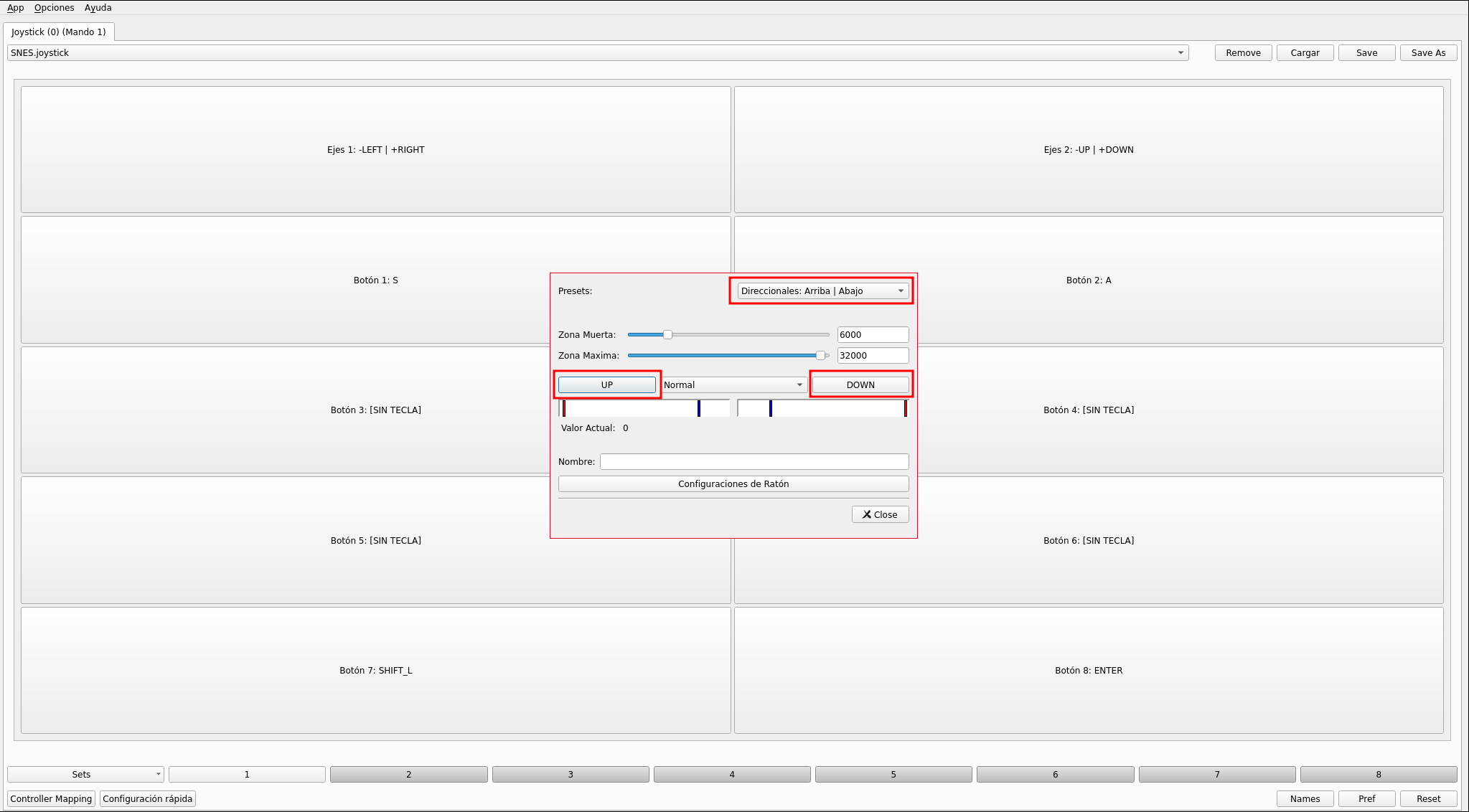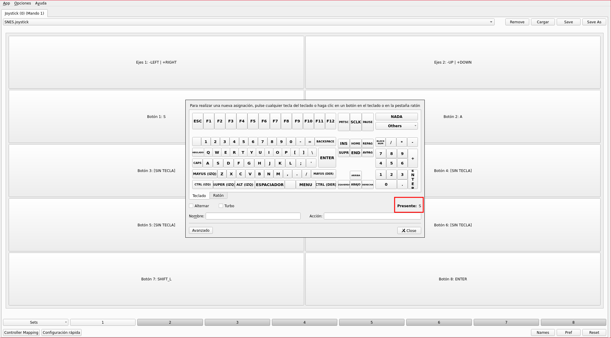 Como podemos ver hay presets predefinidos, los botones normales se mapean del mismo modo seleccionando la tecla a simular: