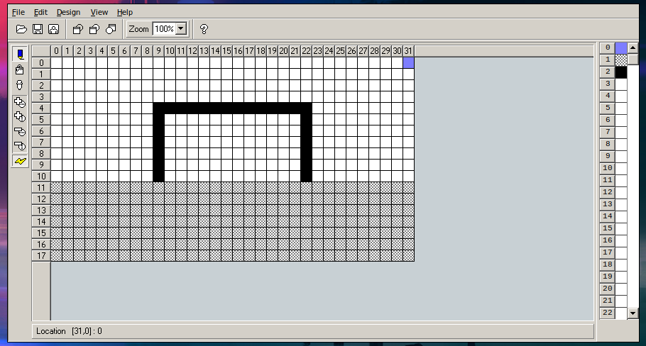Para crear nuestro fondo utilizaremos la herramienta gbtd(GameBoy Tile Designer), donde crearemos nuestros tiles con los que confeccionaremos nuestro mapa: