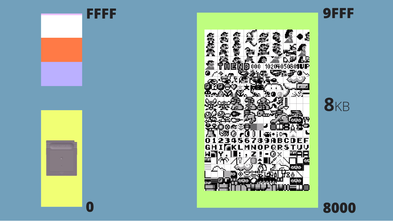 | 0x8000 - 0x9FFF | VRAM | 8.191 bytes |