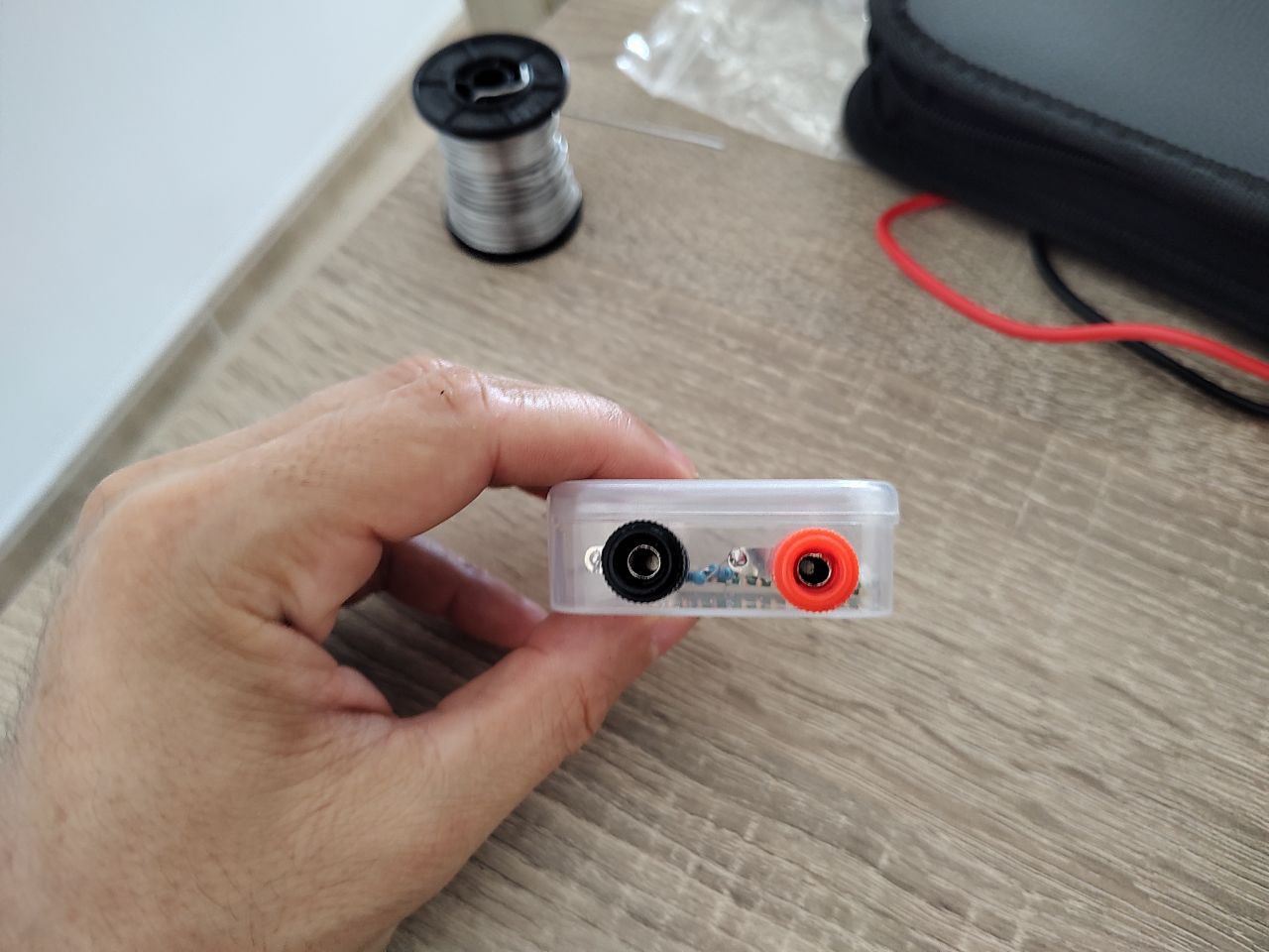 En caunto a los cables de muestreo, tal como vienen de Aliexpress llevan conector para multÃmetro, tuve que cortar el cable y soldarlos a los conectores banana.