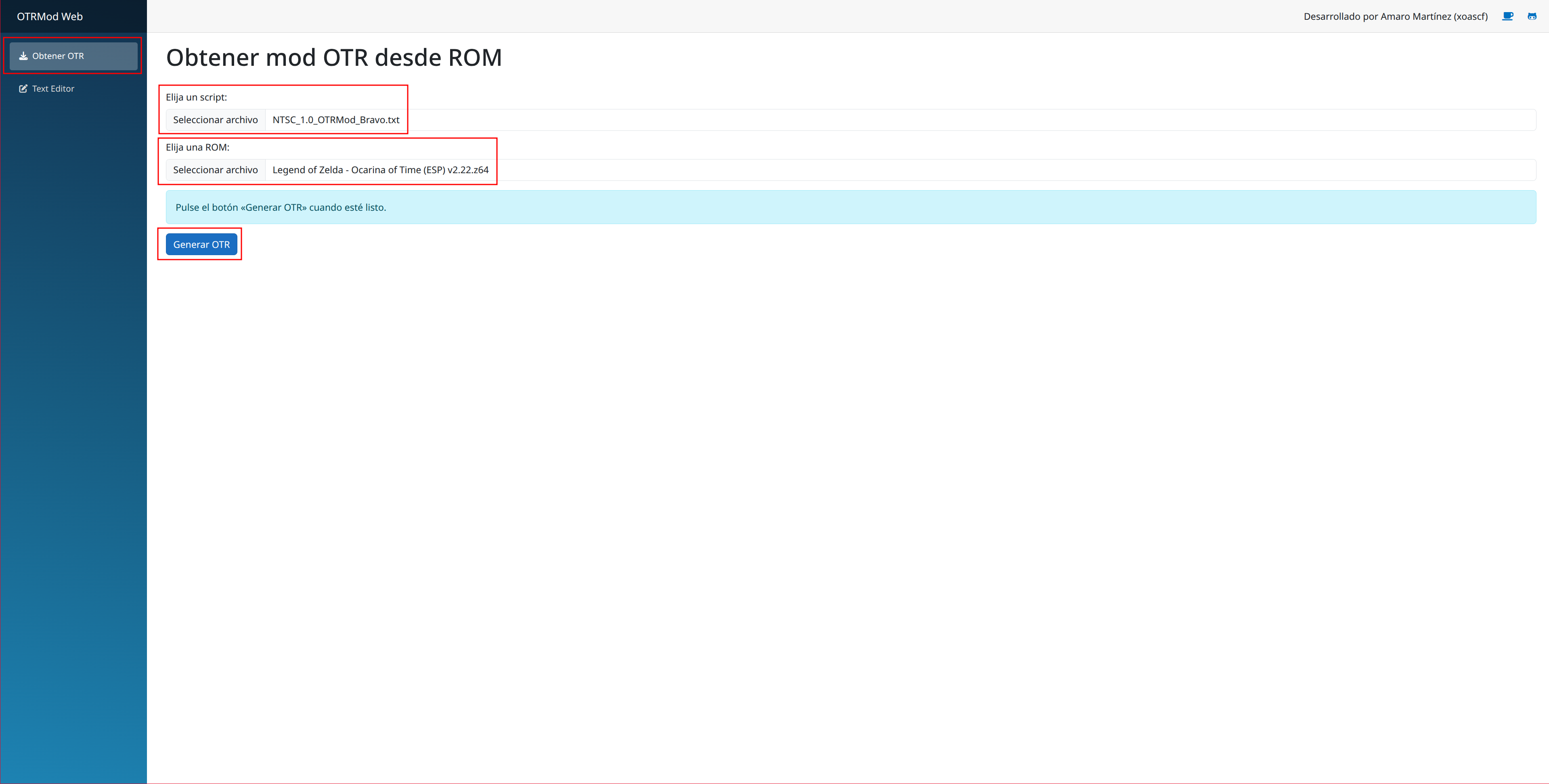 Ontener OTRdonde cargaremos el script de traducción(obtenido del enlace anterior) y laROMen español. - Clickamos en