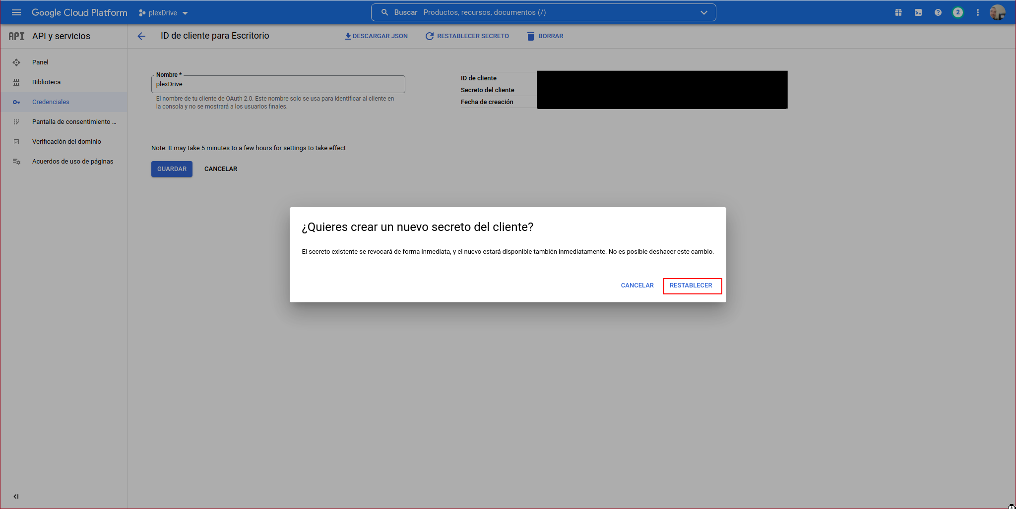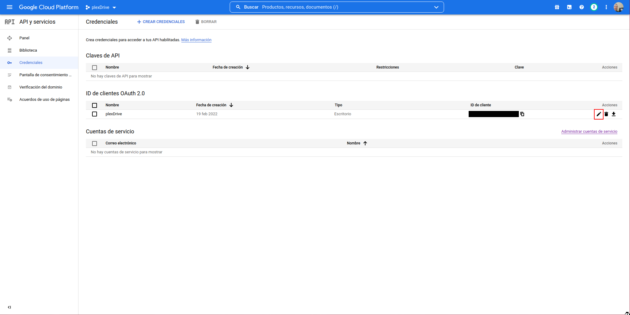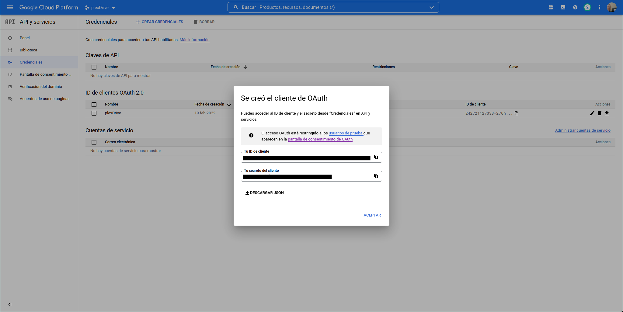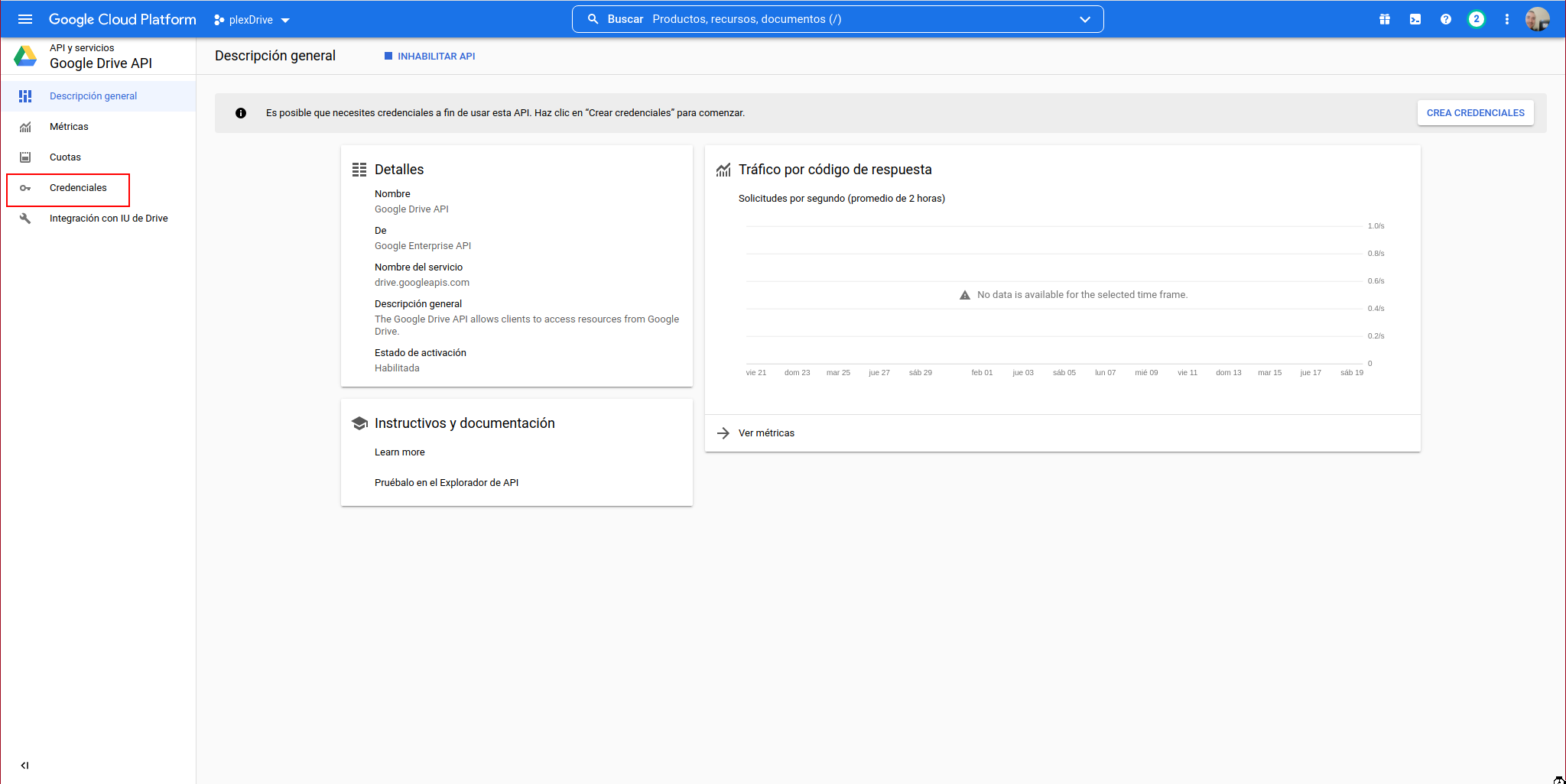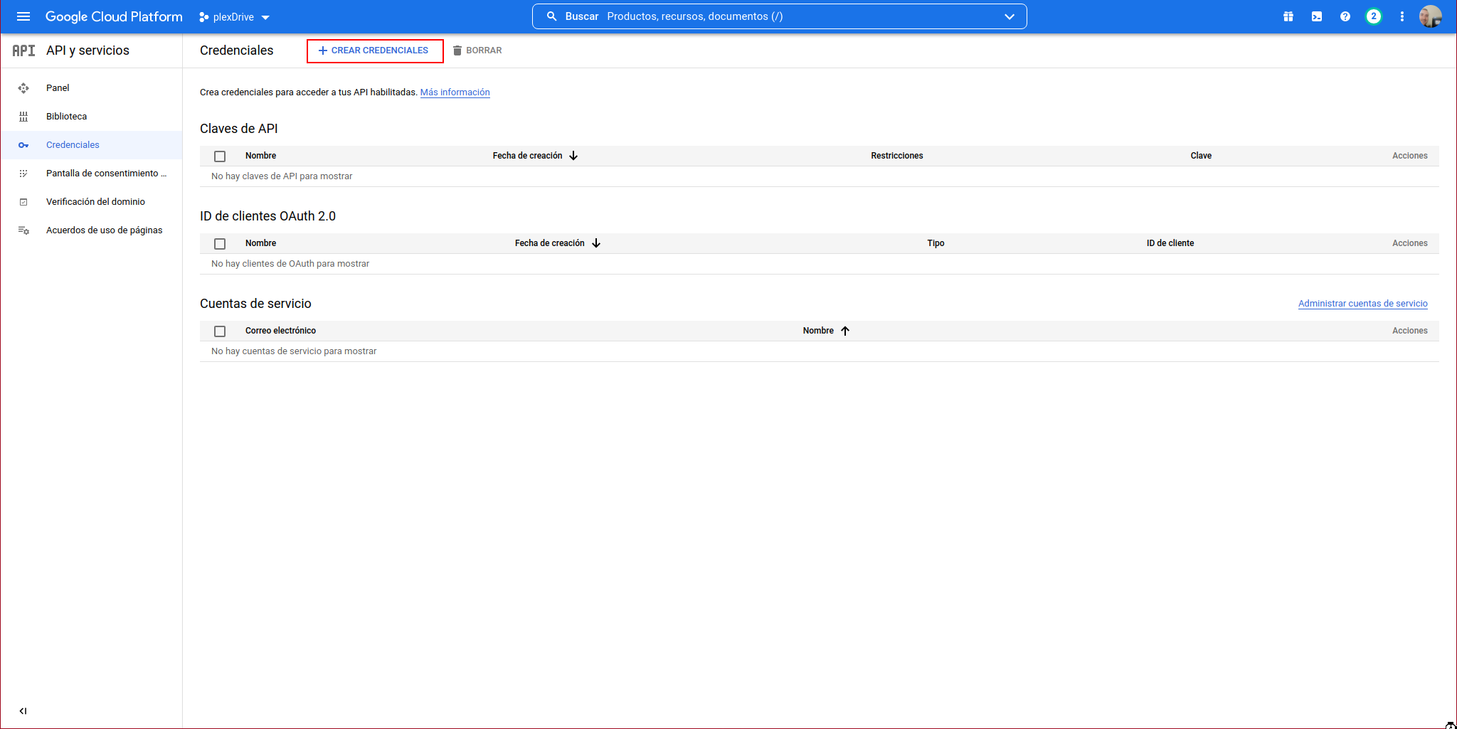 Le damos a “CREAR CREDENCIALES” de nuevo: