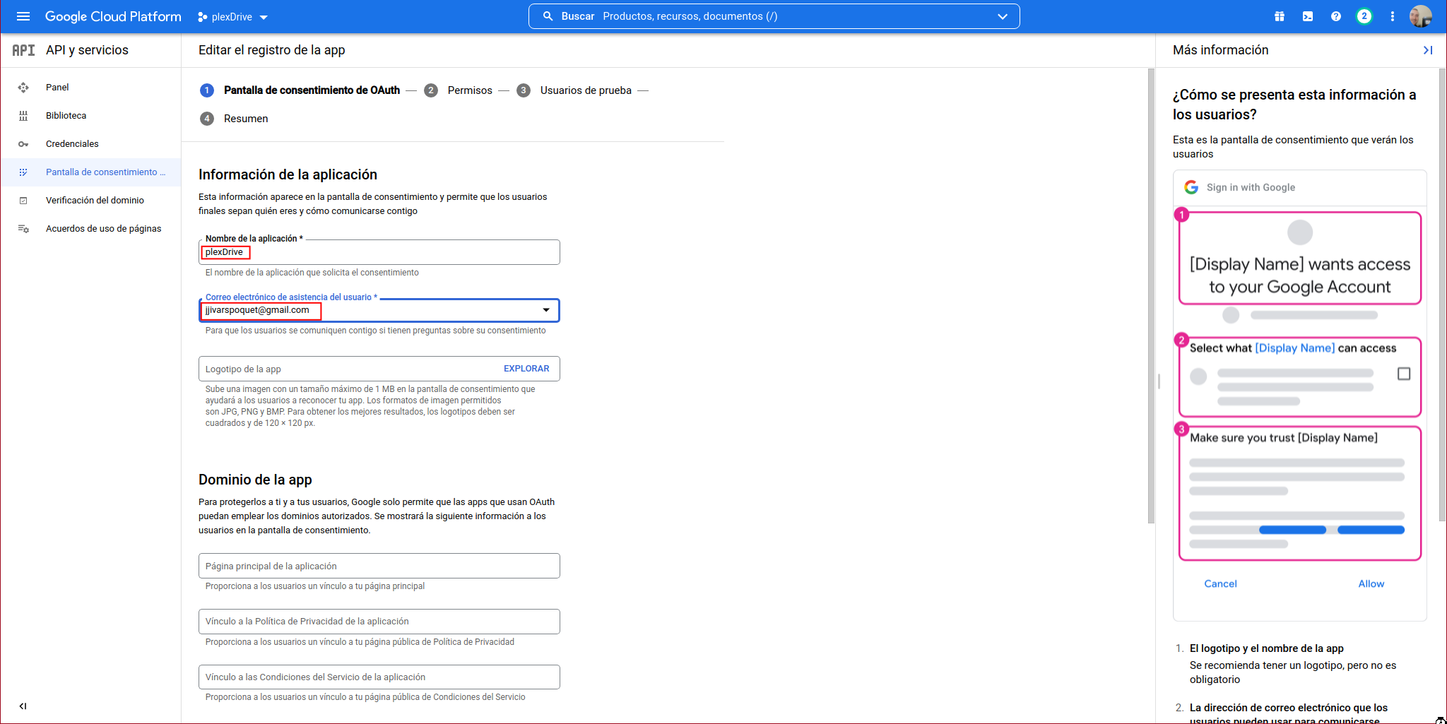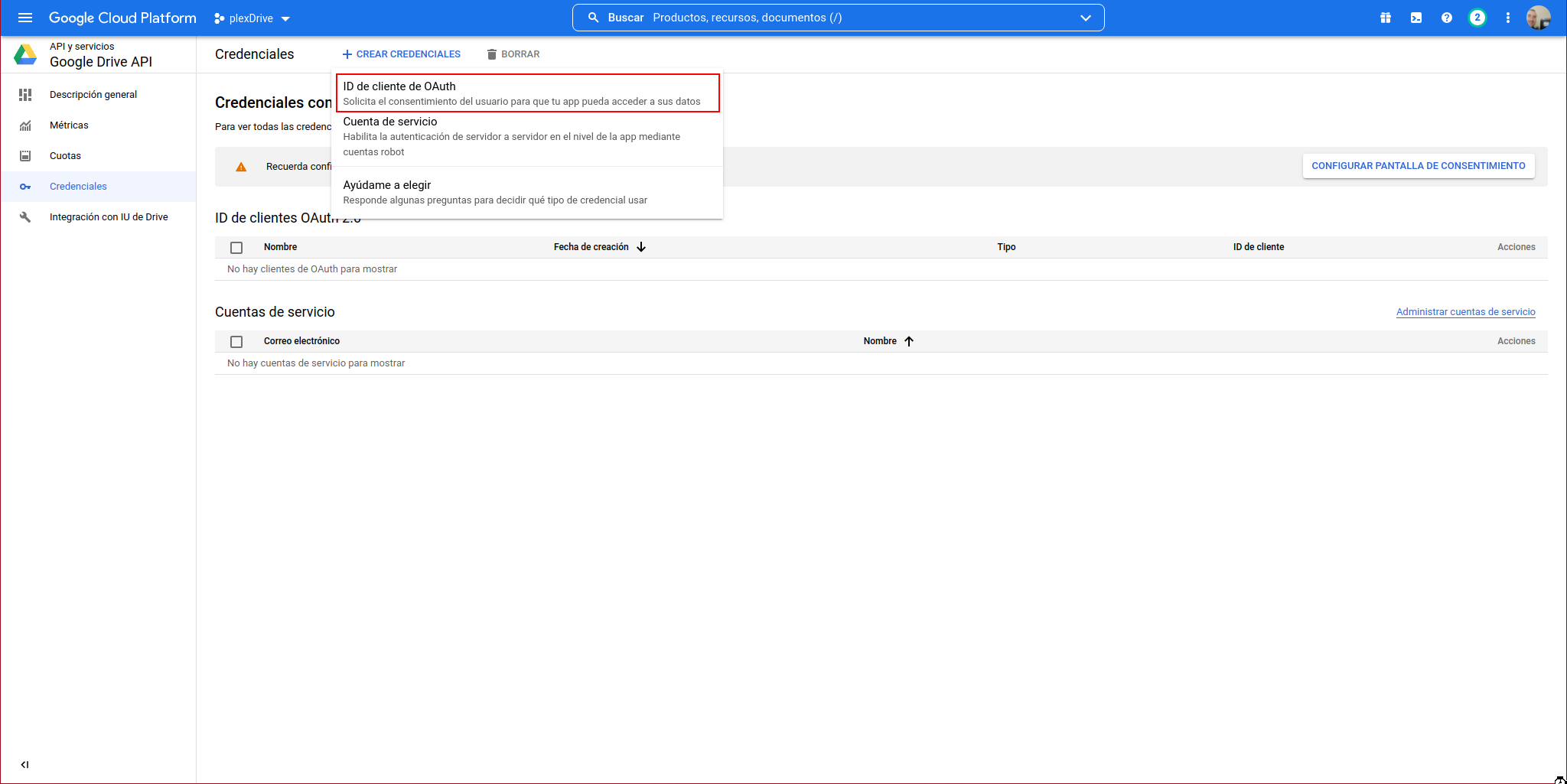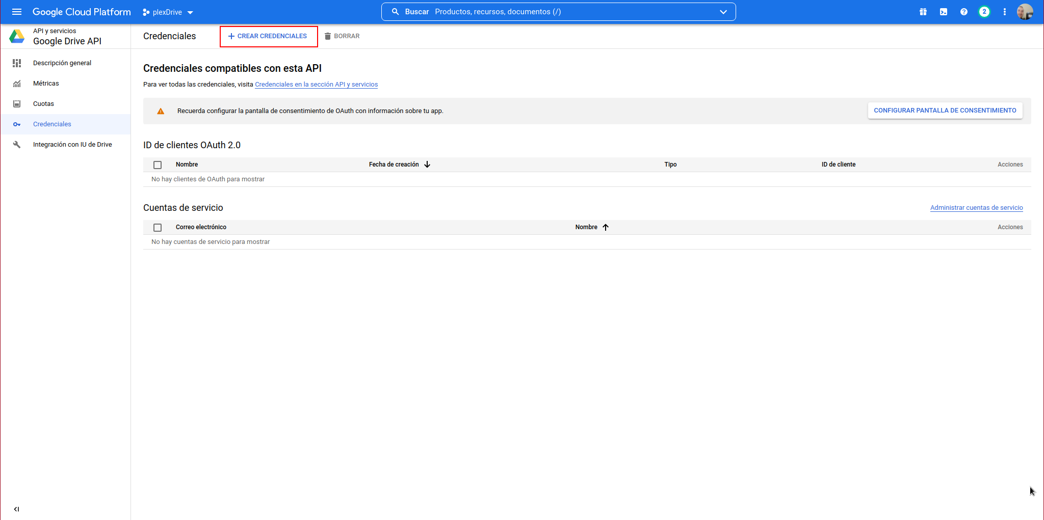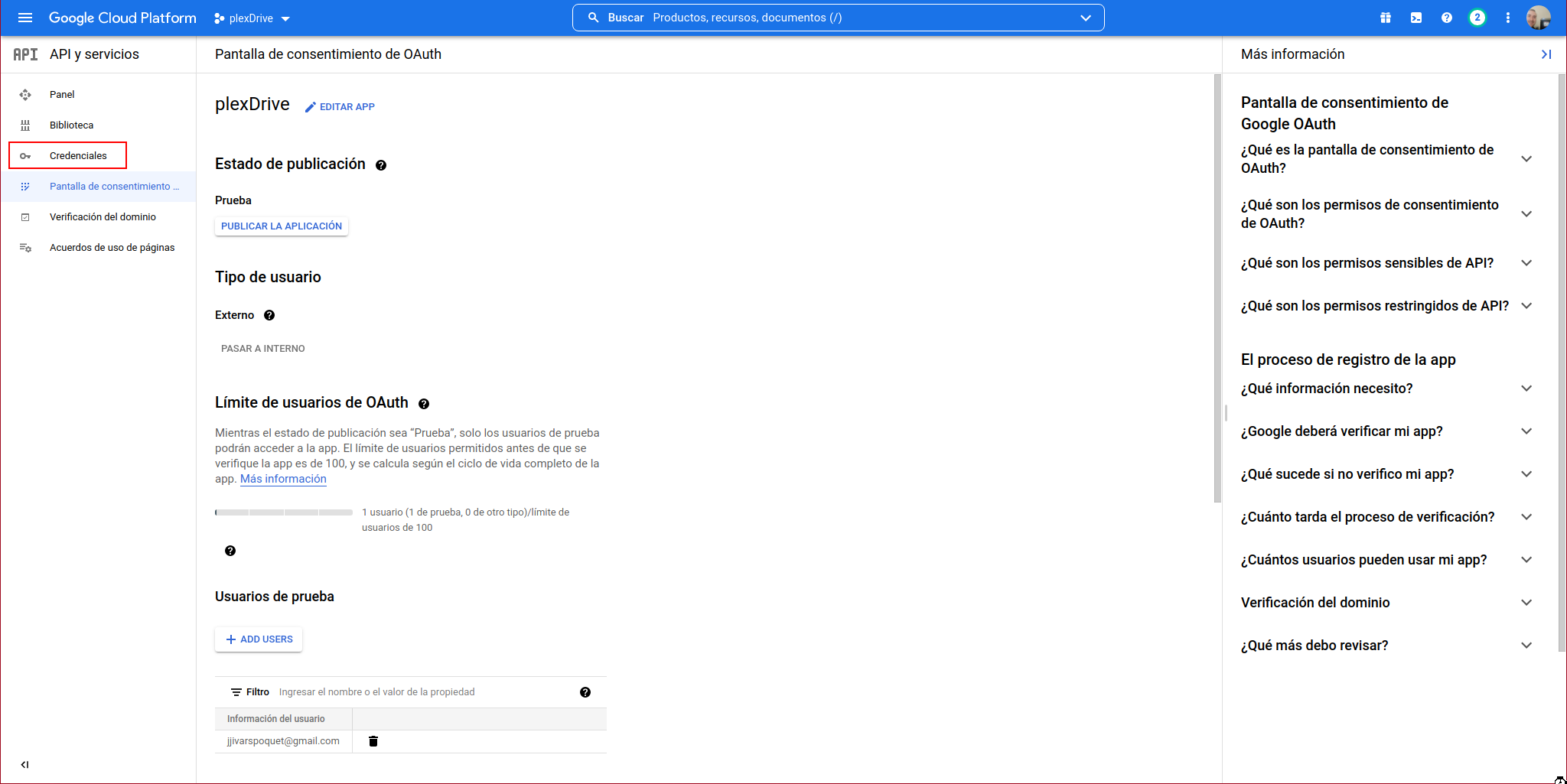 Nos llevará a la “Pantalla de consentimiento de OAuth”, desde aquà accedemos a la sección “Credenciales”: