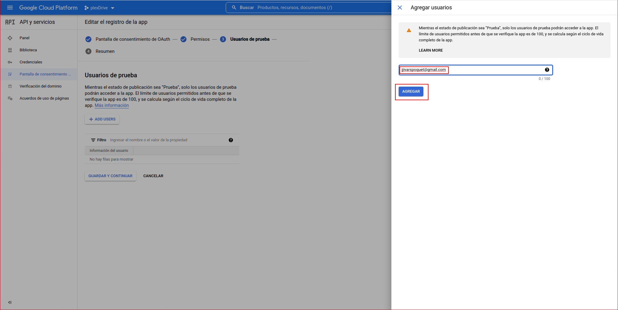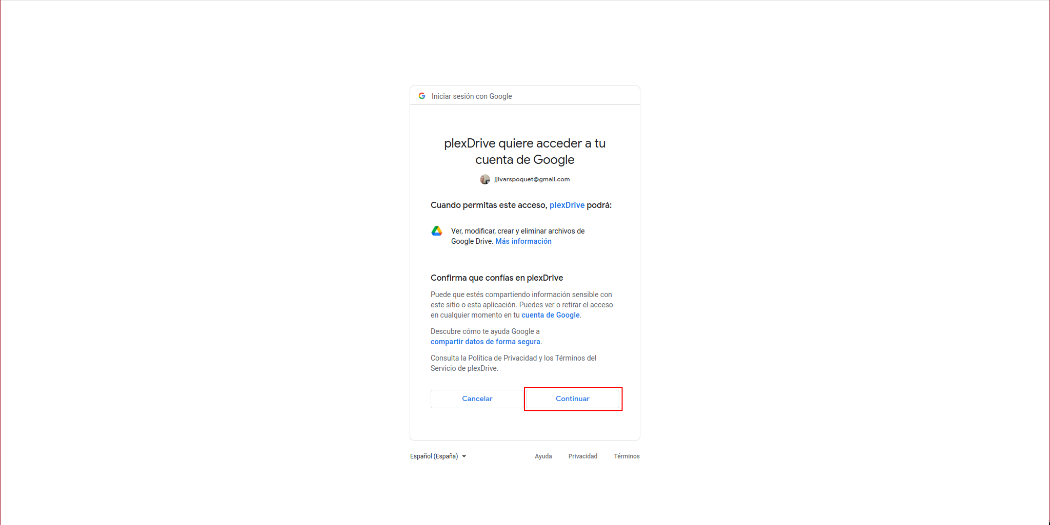 Accedemos a la URL que nos indica PlexDrive mediante el usuario anteriormente autorizado: