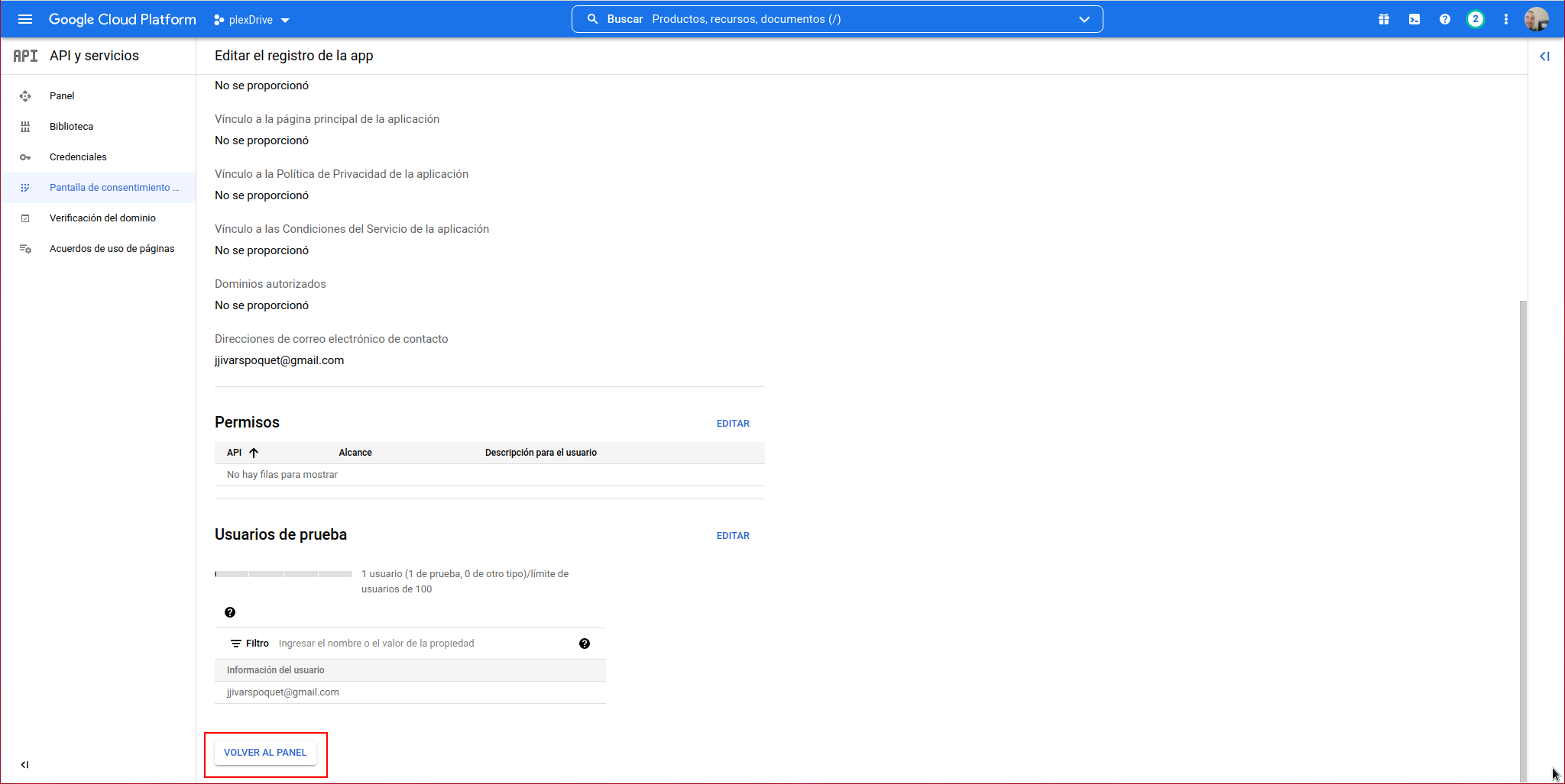 Aparecerá un resumen, le damos a “VOLVER AL PANEL”: