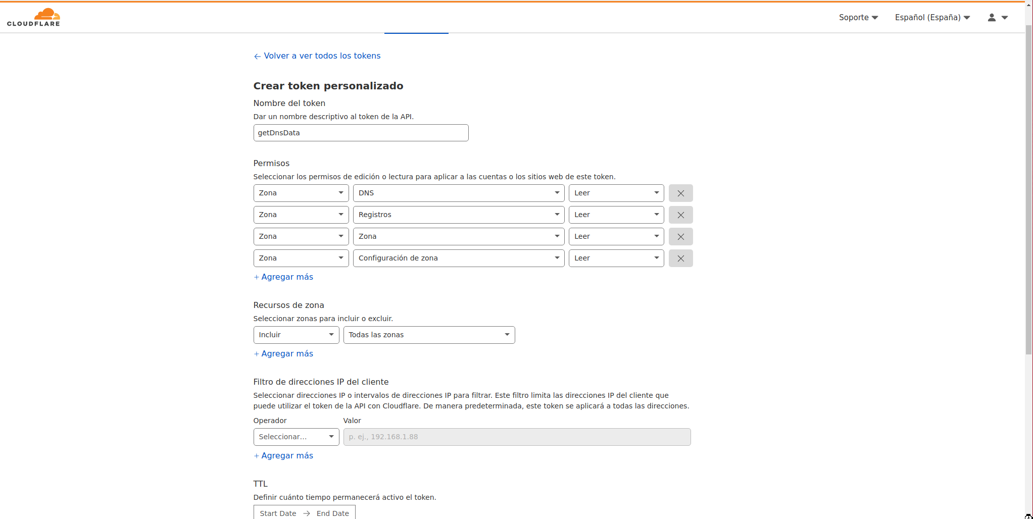 Creamos una personalizada de tal modo que solo pueda leer información de los DNS: