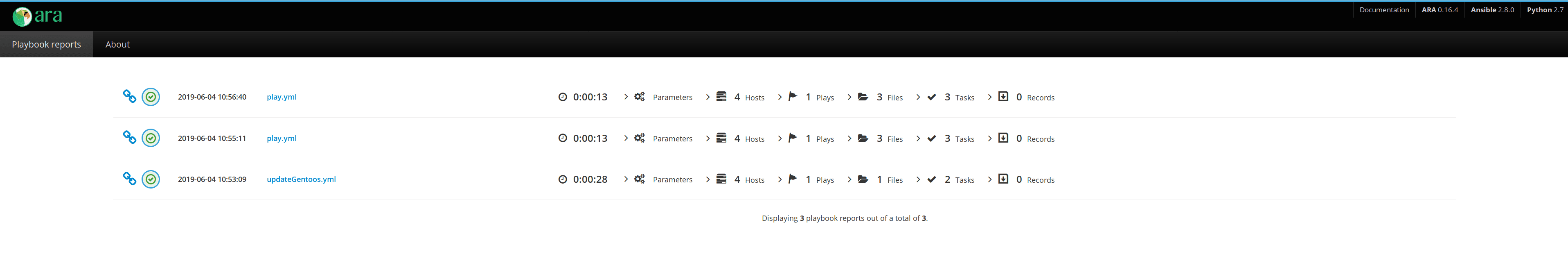 Ara es una aplicación de registro de ejecuciones de Ansible, no ejecuta playbooks, si no que guarda en una base de datos el resultado de la ejecución manual para luego mostrar los datos a través de una interfaz web, esto nos permitirá debugear playbooks poco optimizados.