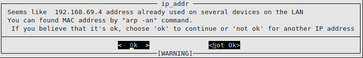 Nos advertirá de que se ha detectado una duplicidad de ip en la red, pero es normal, aceptamos los cambios: