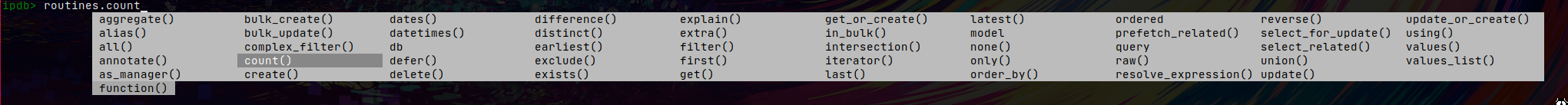 Podemos incluso ejecutar código Python sobre los objetos como contar el número de rutinas obtenidas de la base de datos: