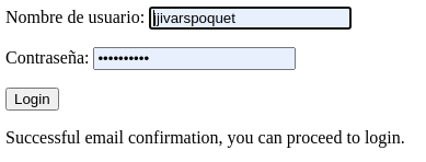 Cuando el usuario clicke en el enlace del email será redirigido a la página de login donde se le mostrará un mensaje indicándole que su cuenta ha sido confirmada y puede proceder a logearse: