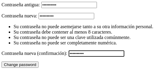 Y en cuanto hagamos login nos mostrará el formulario de cambio de password: