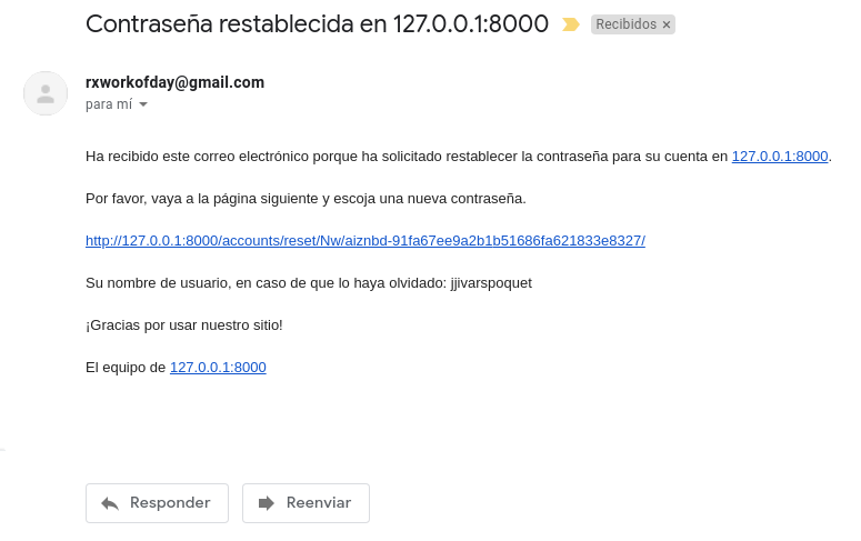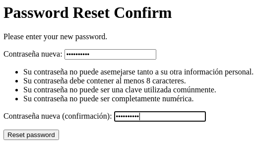 Al clickar en el enlace el usuario podrá cambiar el password: