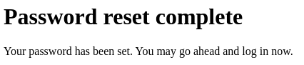 <p>Your password has been set. You may go ahead and log in now.</p>