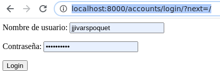 La URL de login viene definida por django.contrib.auth y la URL donde redirigirnos en caso de autenticarnos correctamente la definimos nosotros: