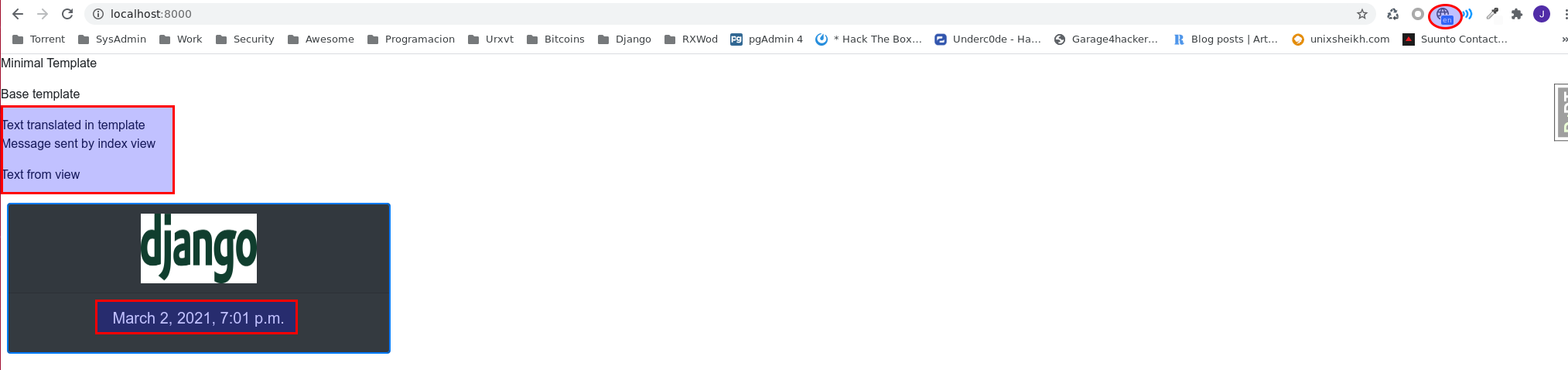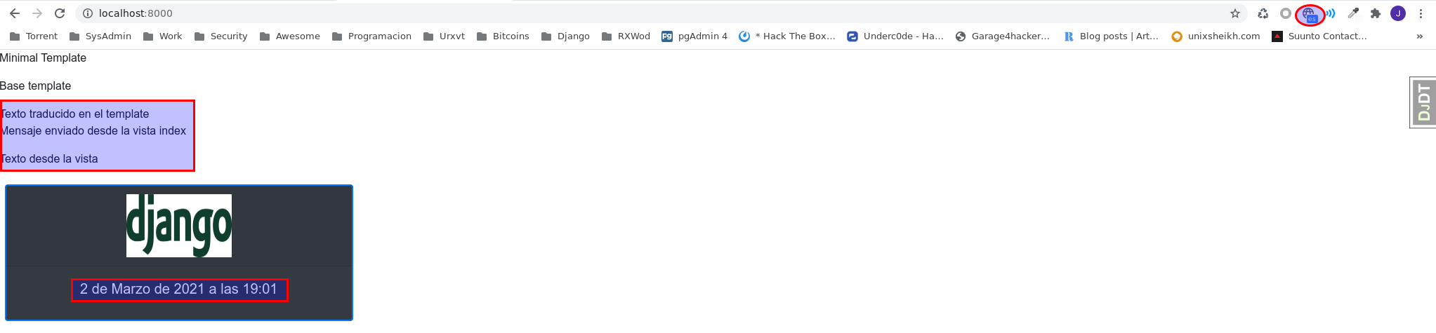 En el template index vamos a traducir otro texto de prueba, para ello cargamos la internacionalización: