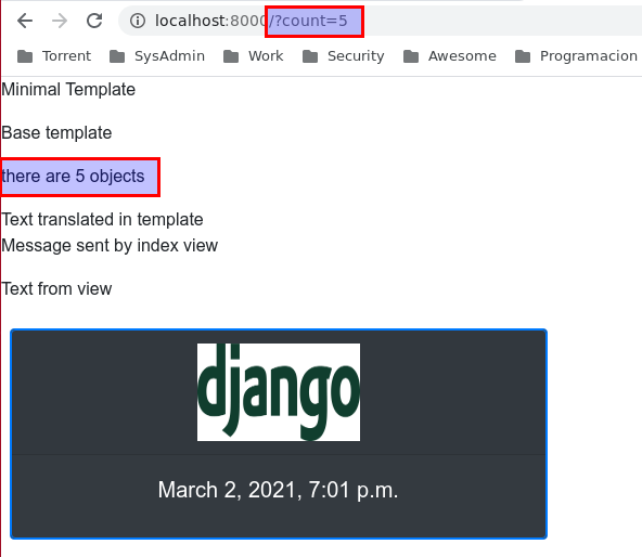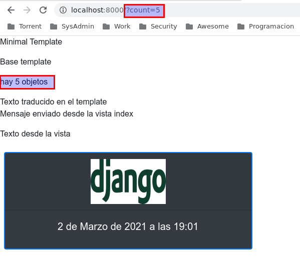 Ahora si accedemos al index pasándole el parámetro count vía GET, si es singular aparecerá en singular, si es plural en plural: