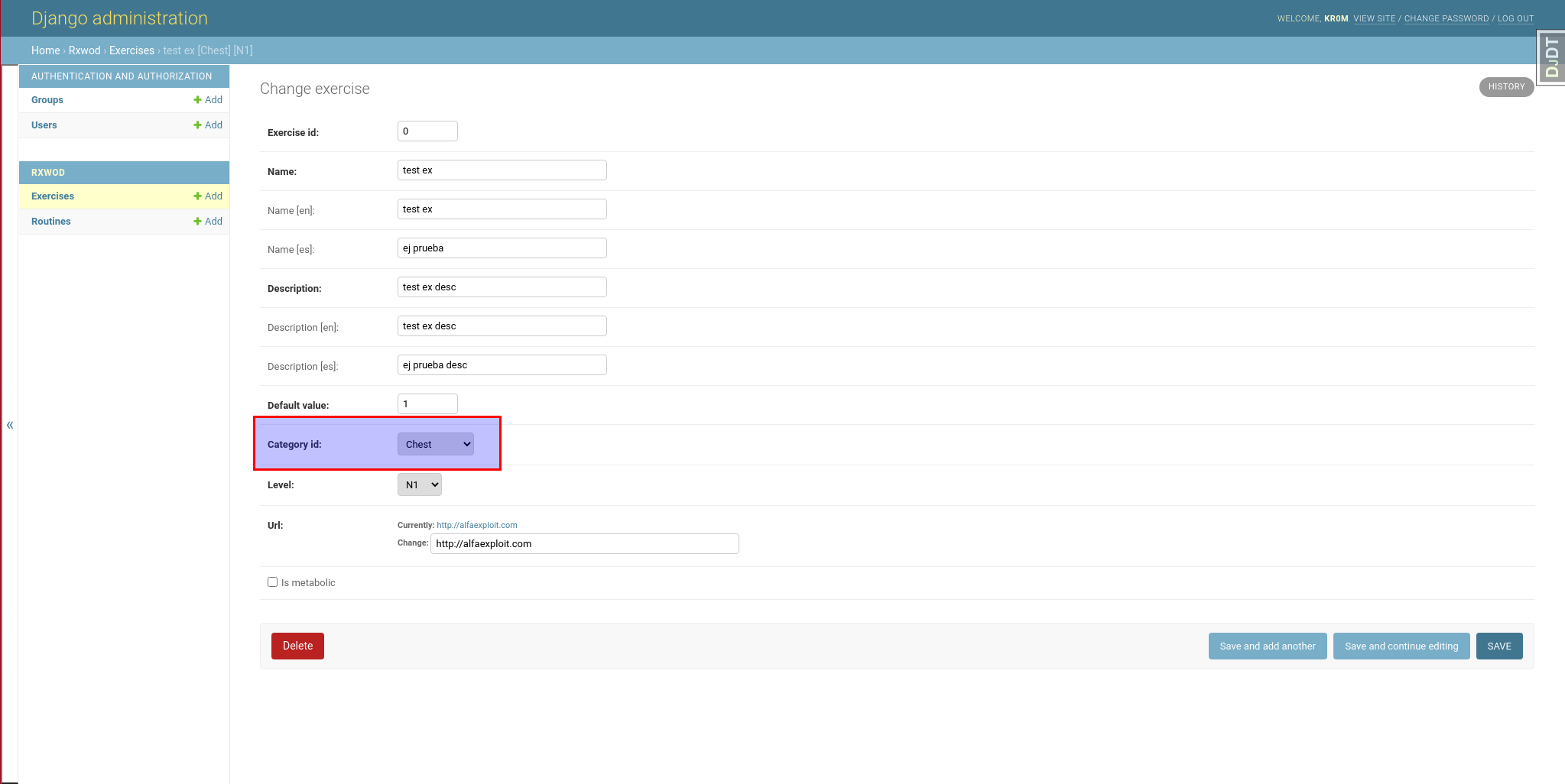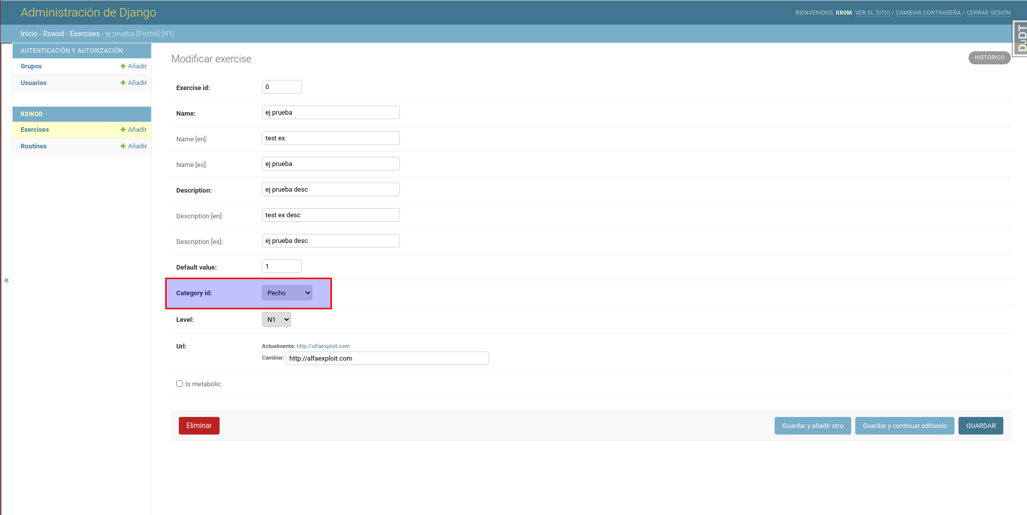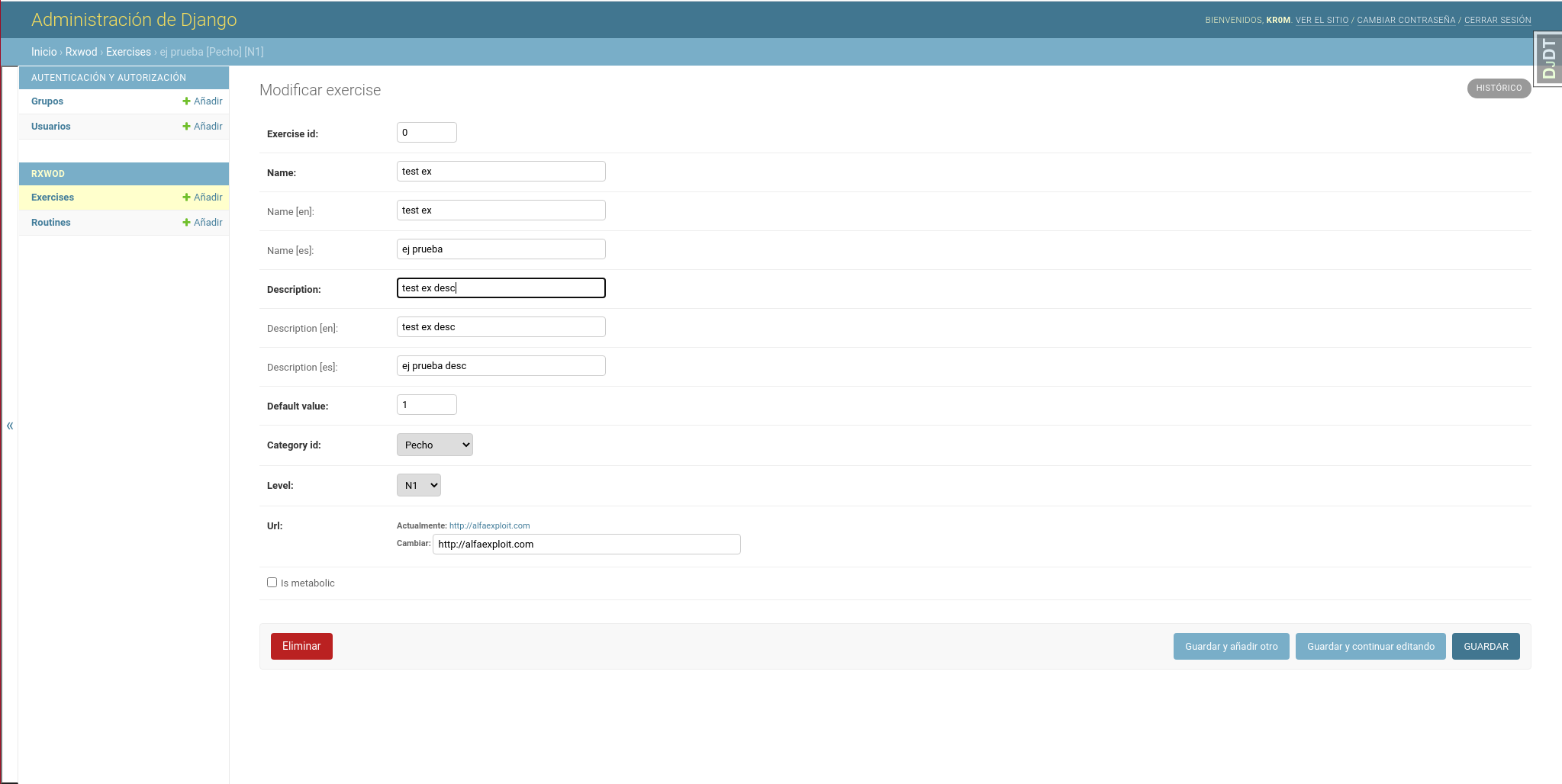 Y rellenar la traducción a español del ejercicio correspondiente desde la interfaz de admin: