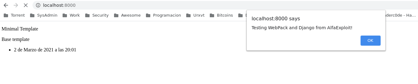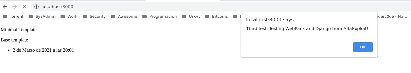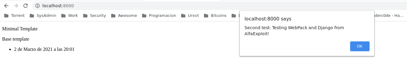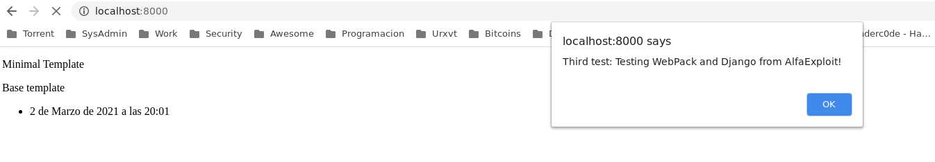 alert("Second test: Testing WebPack and Django from AlfaExploit!");