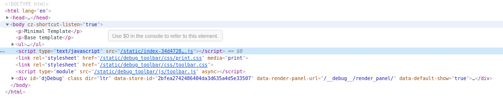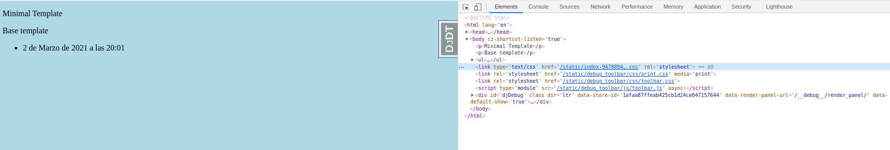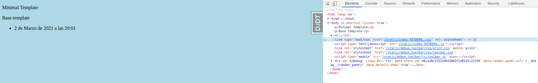 Django automáticamente utilizará el último bundle generado, para comprobarlo podemos hacer un cambio en el código JS: