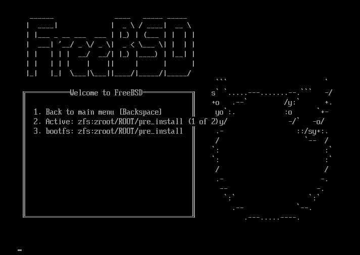 Como podemos ver FreeBSD por defecto genera un “boot environment” en la instalación del sistema operativo.