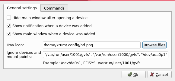 Para que no aparezcan dispositivos del sistema o discos internos habrá que ignorarlos metiéndolos en la lista de dispositivos ignorados: