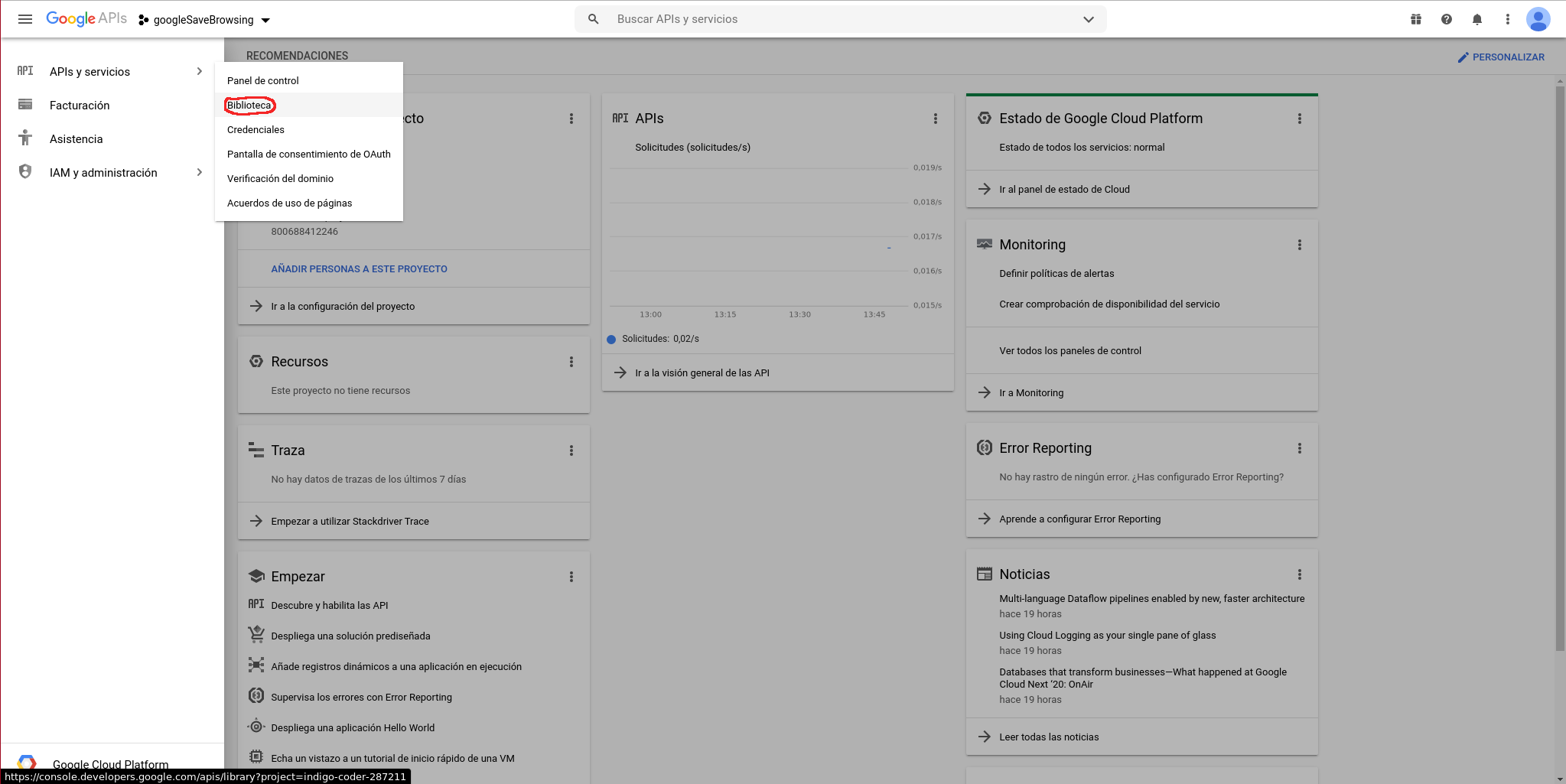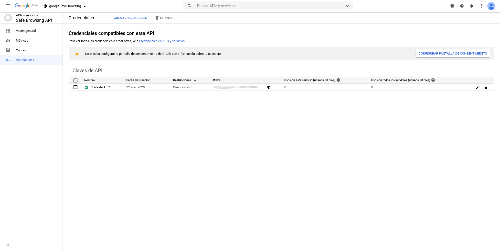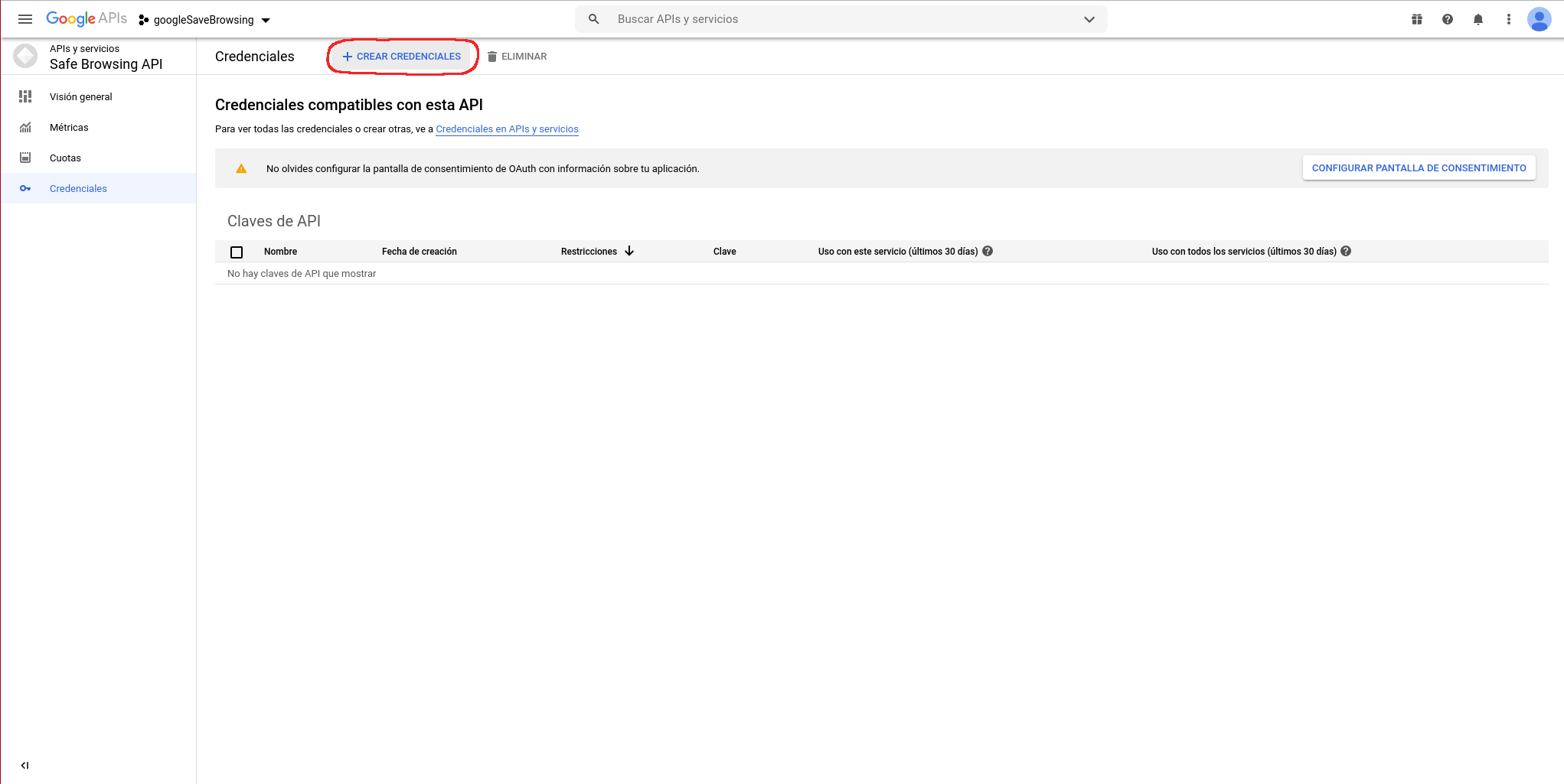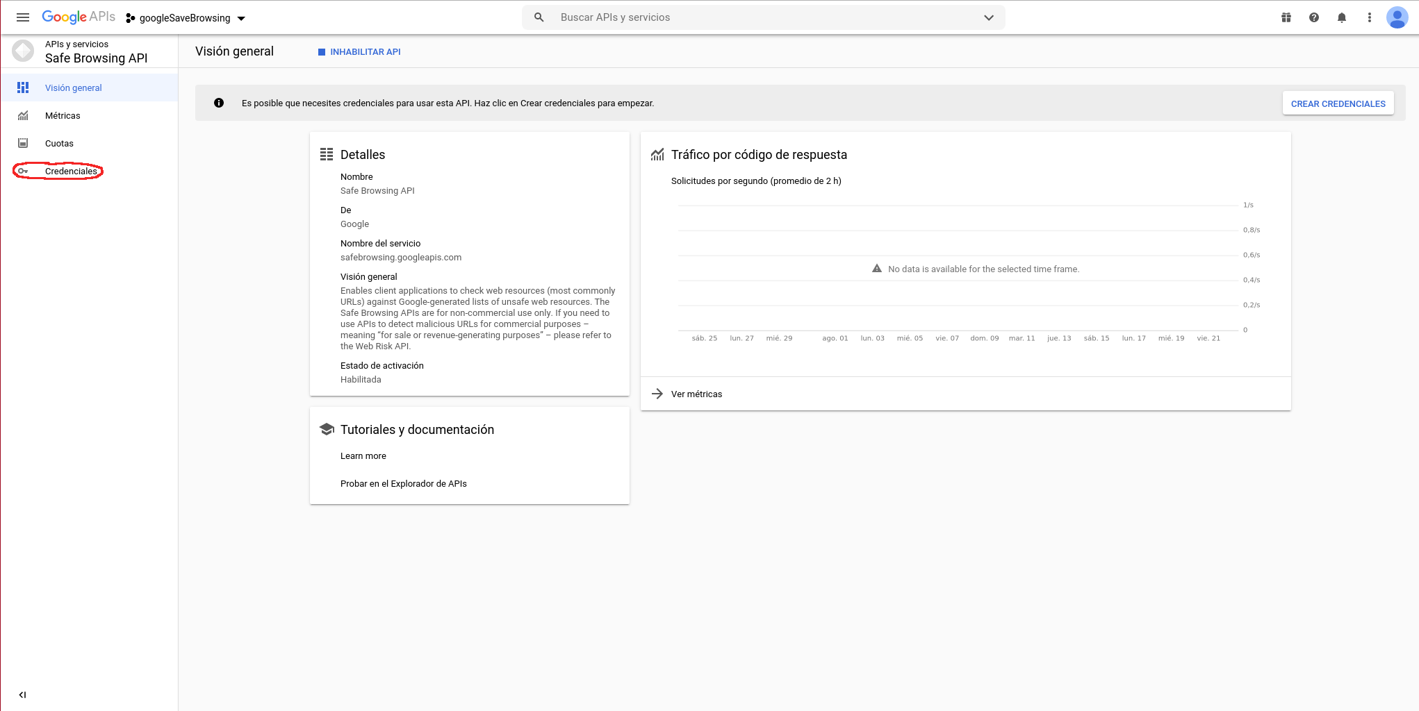 Habilitamos la API: