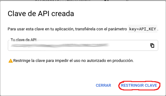 NOTA: Obviamente tendremos que sustituir las X por la API key que podemos consultar desde el panel de gestión de Google.