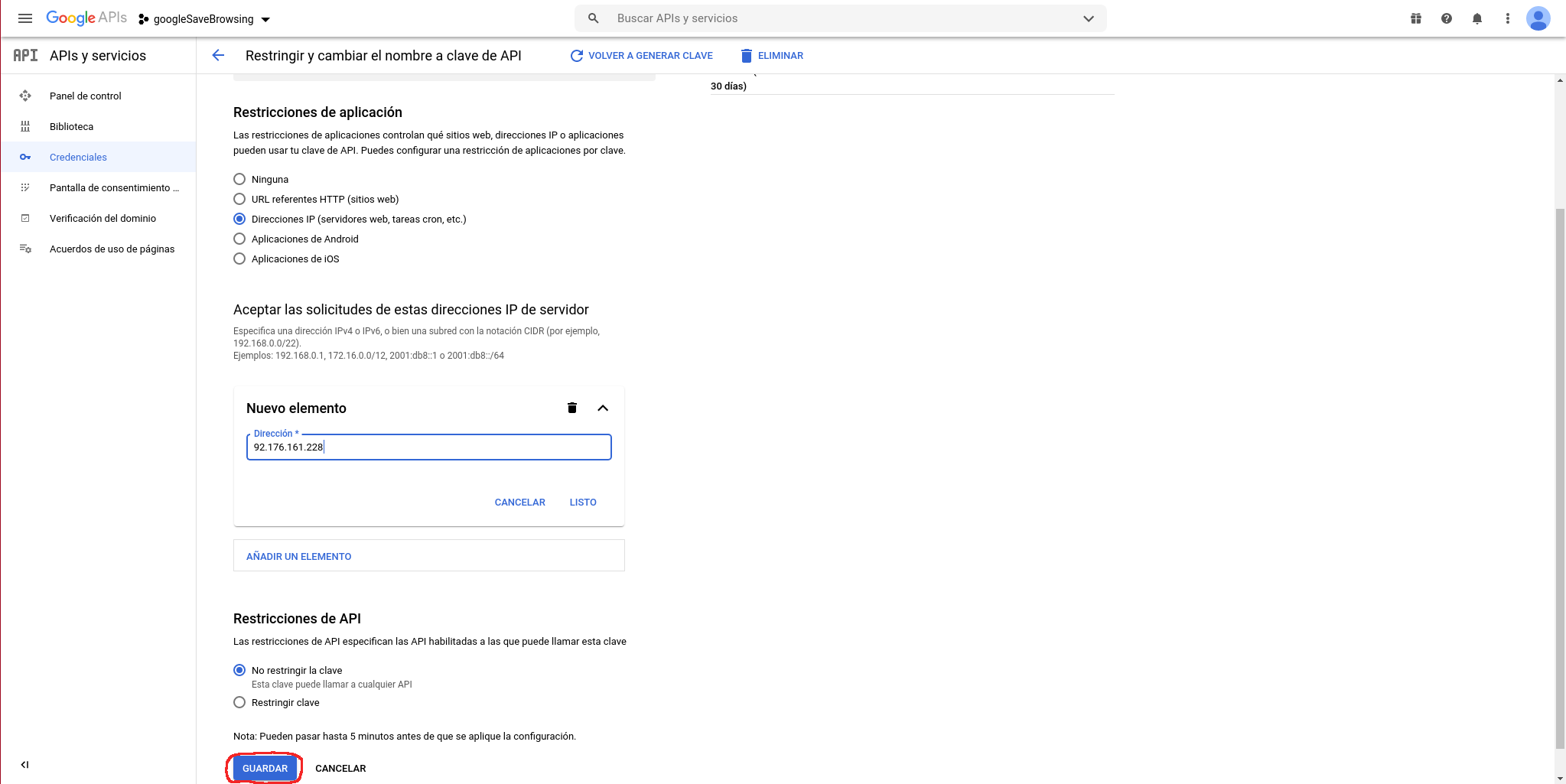 Vamos a crear una restricción por IP para asegurarnos de que nadie accede a la API sin permiso: