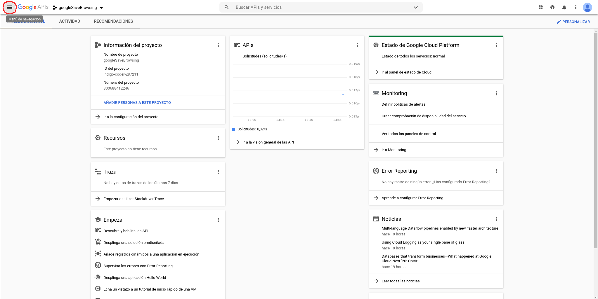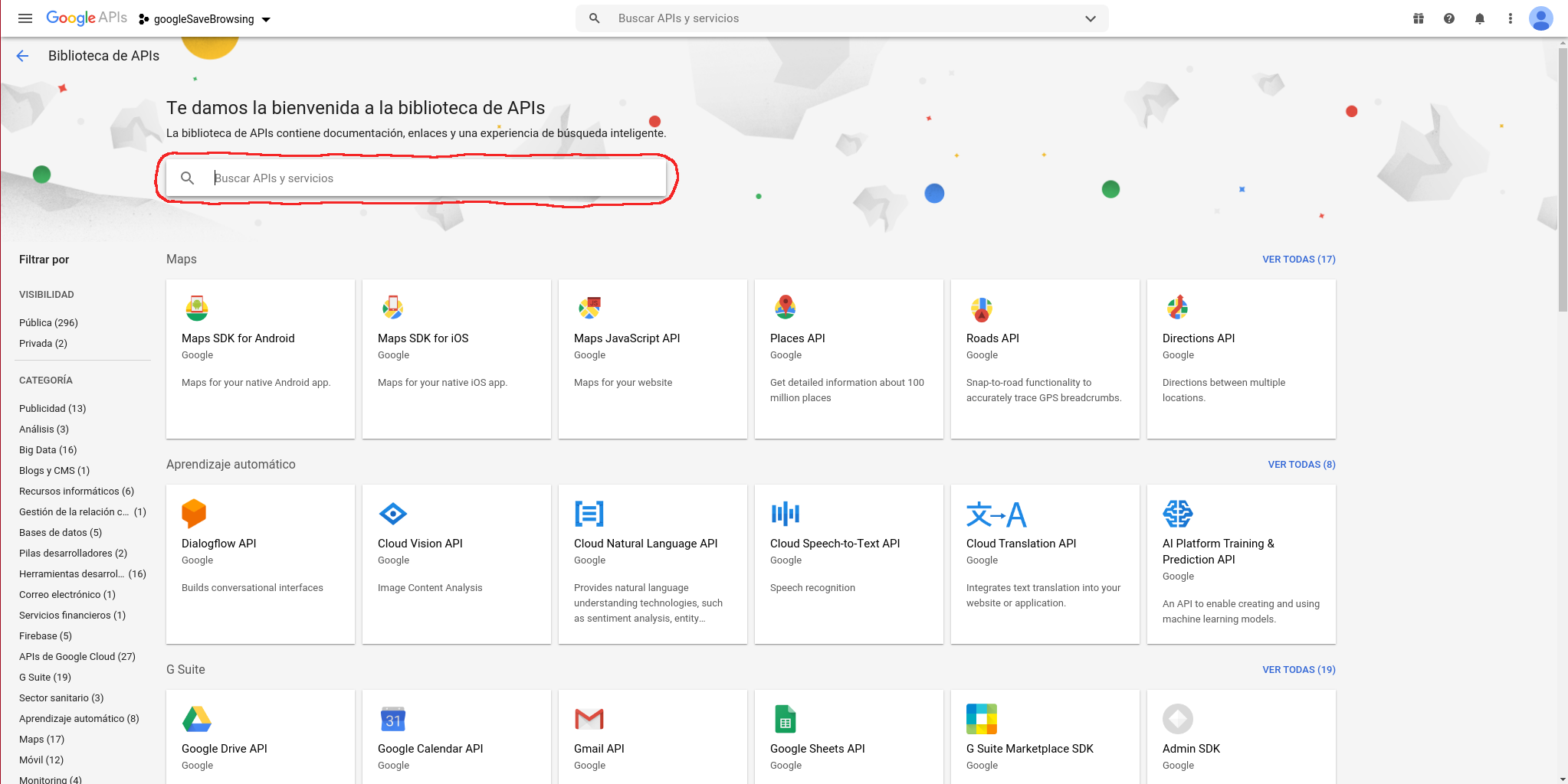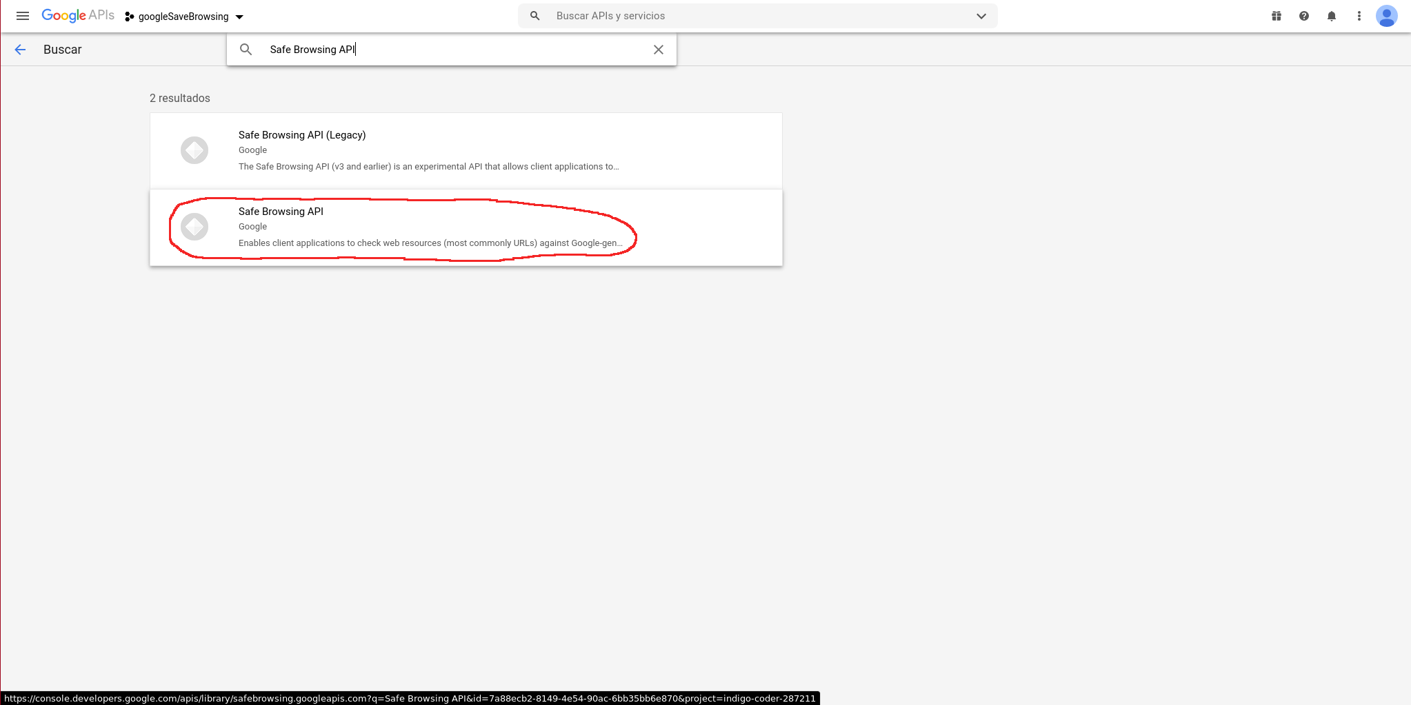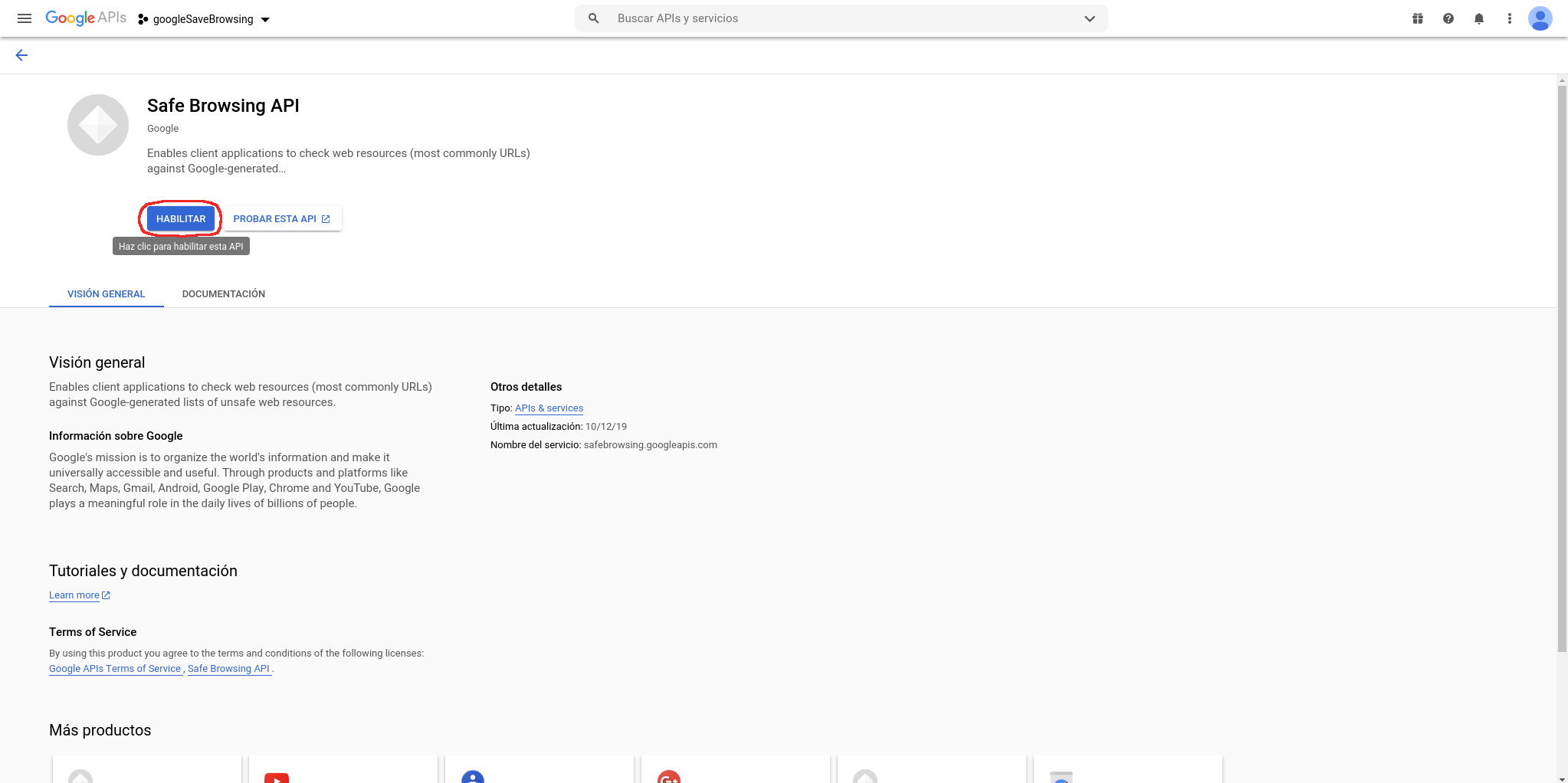 Buscamos “Safe Browsing API” mediante el buscador: