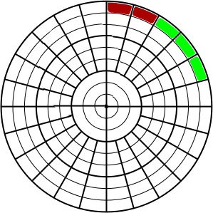 El rojo representa los sectores ocupados por el fichero1 mientras que los verdes los ocupados por fichero2.