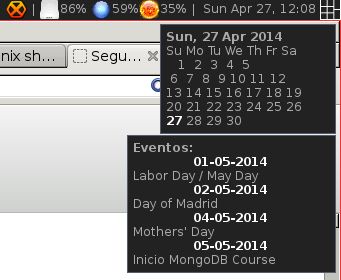 Con esto ya lo tenemos todo, ahora cuando el ratón pase sobre el reloj se desplegará un calendario y una lista de los eventos, el resultado es el siguiente: