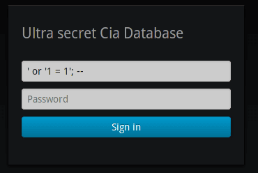 El problema está en que no se parsea de ningún modo la entrada del usuario pudiendo introducir como usuario ’ or ‘1 = 1’; – lo que está haciendo es hacer que la condición del select sea siempre verdadera para todas las filas mediante el 1 = 1, de este modo el select ofrecerá como resultado todos los registros de la tabla, cumpliendo así el requisito impuesto por código de N>0 , finalmente termina la query sql de forma correcta e indica que lo que hay después del ; son comentarios, de este modo la query ejecutada por la base de datos quedaría así:
