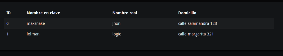CREATE TABLE noc ( id int(11) NOT NULL, nombre_en_clave varchar(80) NOT NULL, nombre_real varchar(80) NOT NULL, domicilio varchar(80) NOT NULL);
