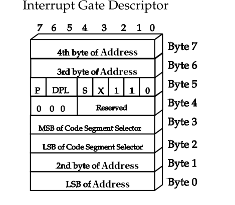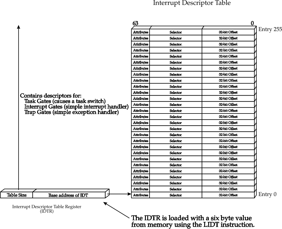 idt_gate idt[IDT_ENTRIES];// Array of gates